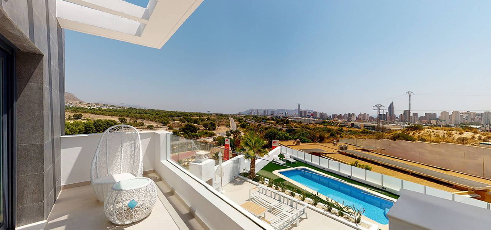 Elity villas is an exclusive development of luxury detached properties situated in Finestrat on the Sierra Cortina hills very close to the bustling town of Benidorm. The properties enjoy panoramic views of the sea, a 5 minute drive to a shopping mall with a host of amenities and a short 10 minute drive from the stunning beaches of Benidorm. There is the famous Terra Mitica theme park, a water park, a go karting track and 2 golf courses a few minutes away from the property.