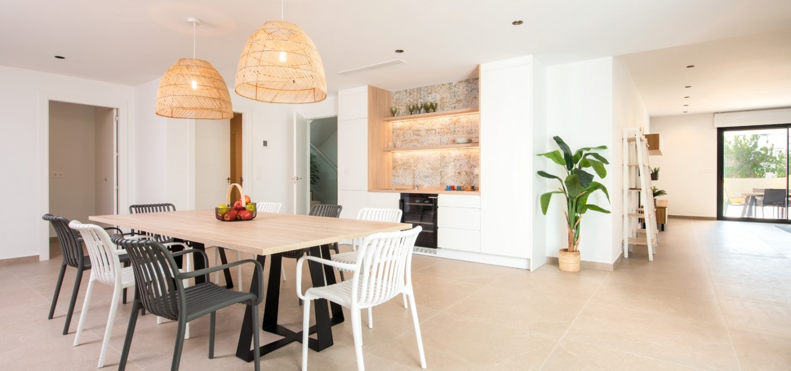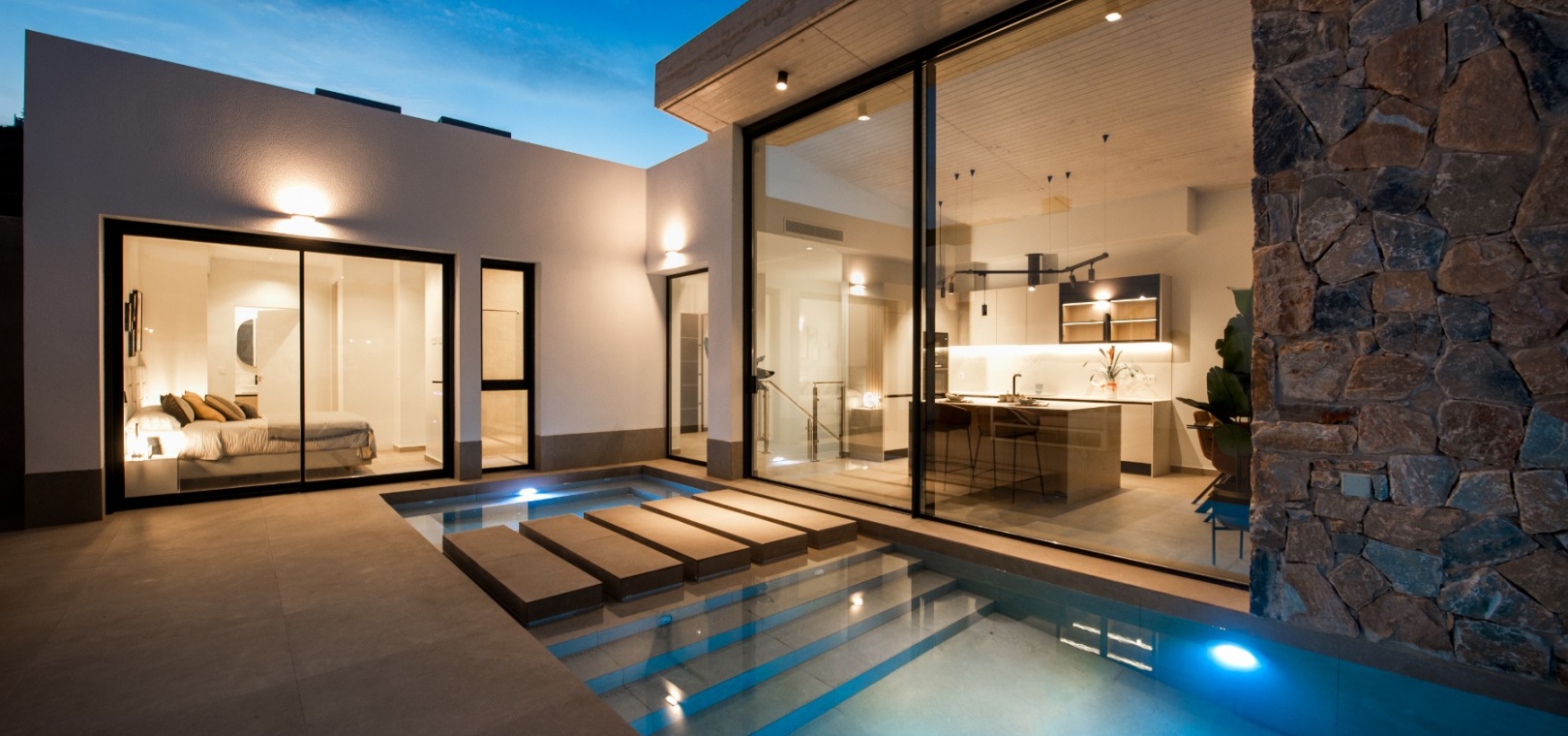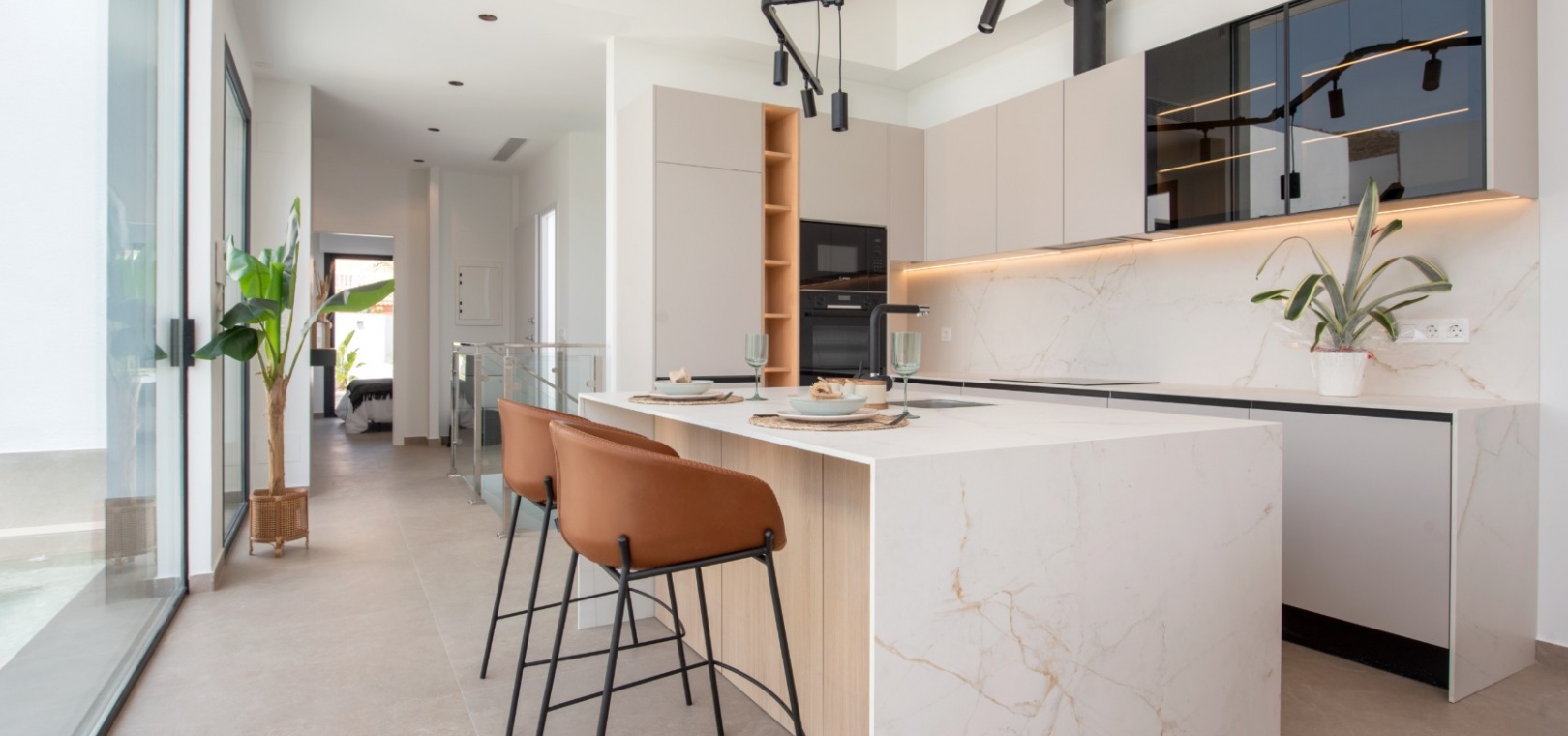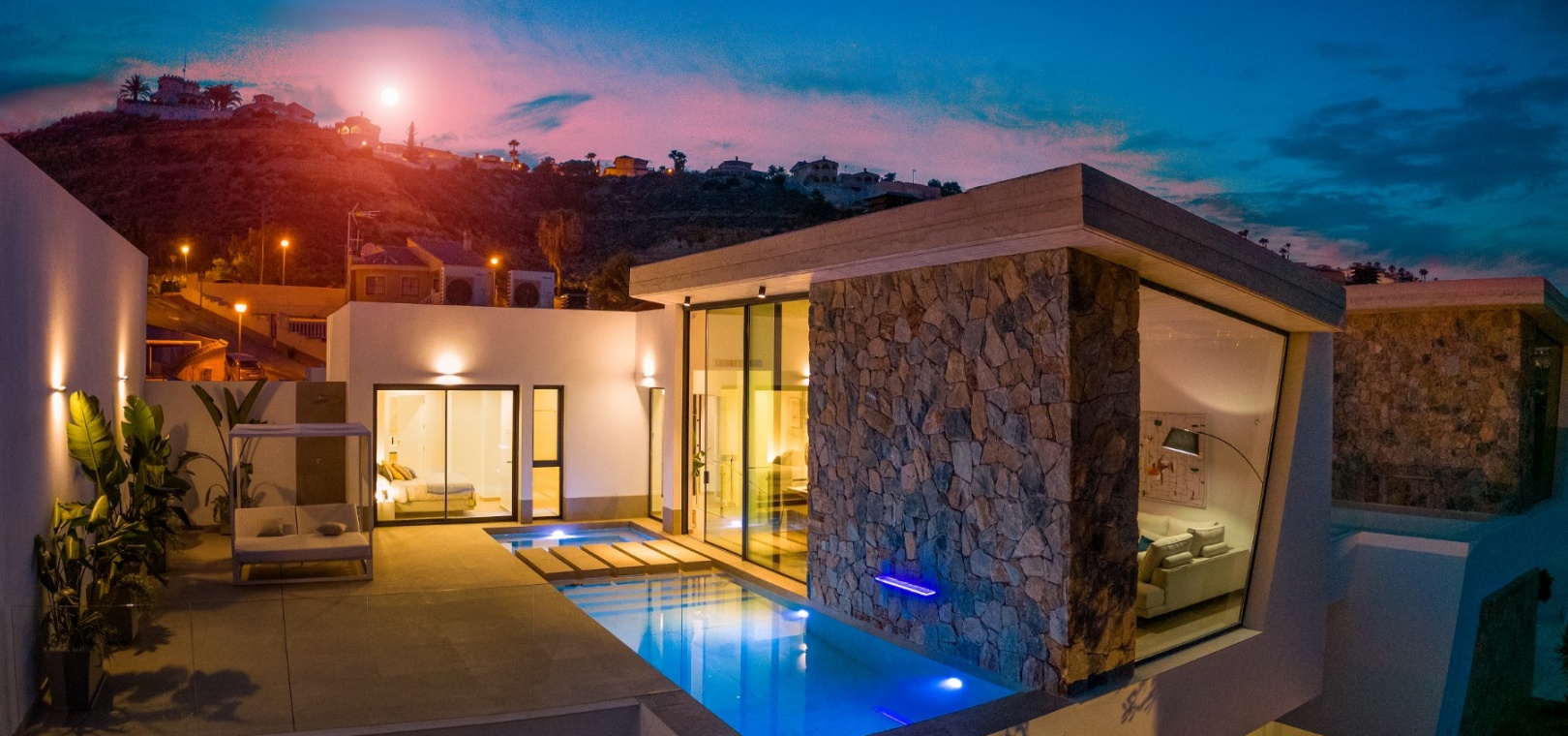 This luxurious villa has a lovely open plan lounge with patio doors which lead out into garden complete with private pool, a modern fitted kitchen with fitted appliances including oven, hob, extractor, fridge/freezer, washing machine, dishwasher and microwave, dining area, a master bedroom with walk in wardrobe and en-suite, two further double bedrooms with fitted wardrobes and a guest bathroom.