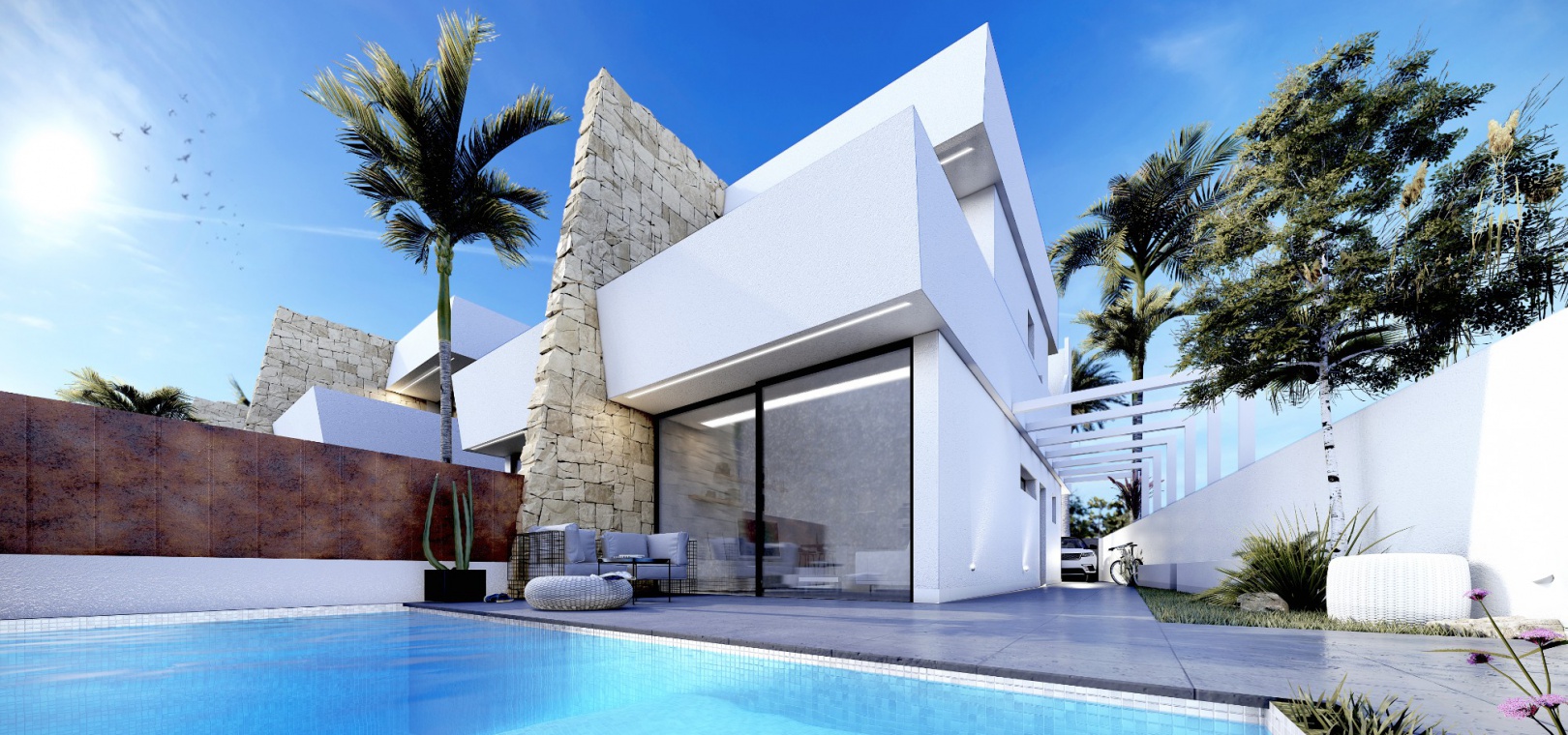 This luxury villa is situated in a mature residential area, just a few minutes drive from the San Pedro town centre and the stunning beach in Lo Pagan. This property is built to the highest standard and includes a private swimming pool, all lighting, modern kitchen with fitted appliances, rooftop solarium and off road parking.