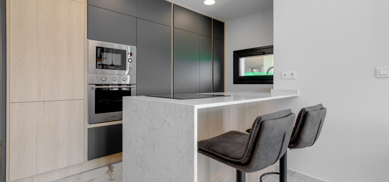 Each apartment comes complete with all furniture, hot/cold air conditioning, LED lighting, fitted kitchen with appliances and secure underground parking and storage.