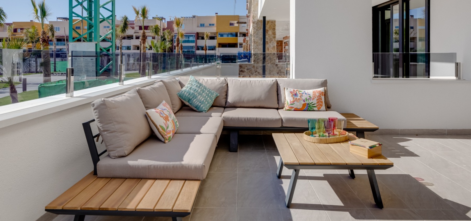 Sunrise De Luxe is a quality development located in a central location within walking distance to the beach, Playa Flamenca commercial centre and La Zenia boulevard. This luxury development features a selection of 2/3 bedroom, 2 bathroom apartments finished to the highest standard with everything included in the price. There is the choice of ground floor with garden/terrace, mid floors with terrace and penthouse with private solarium.