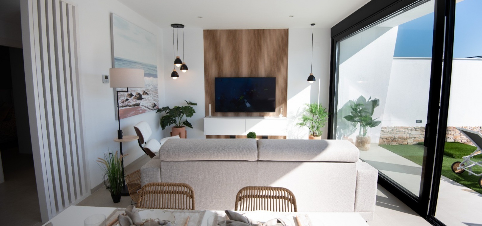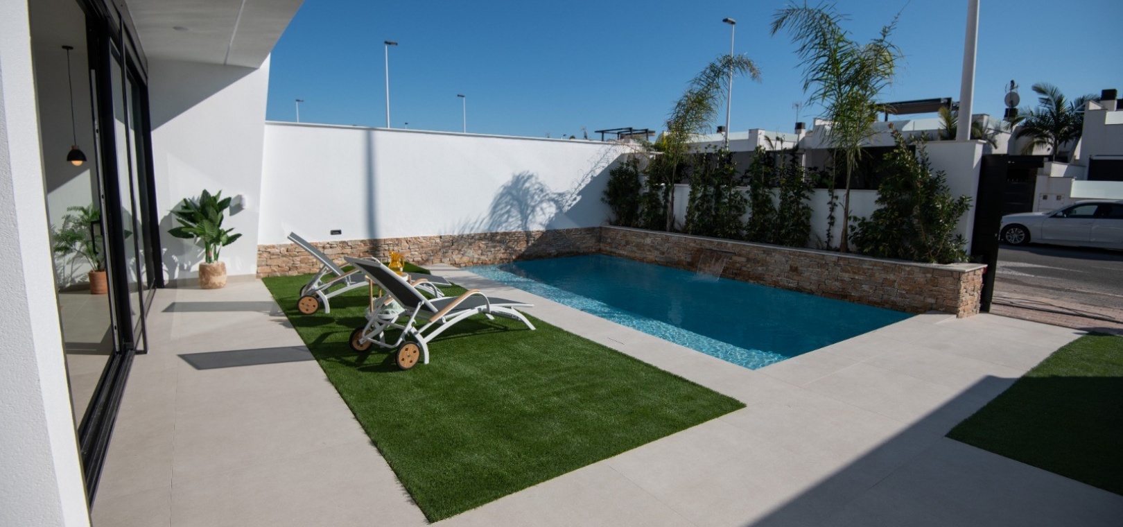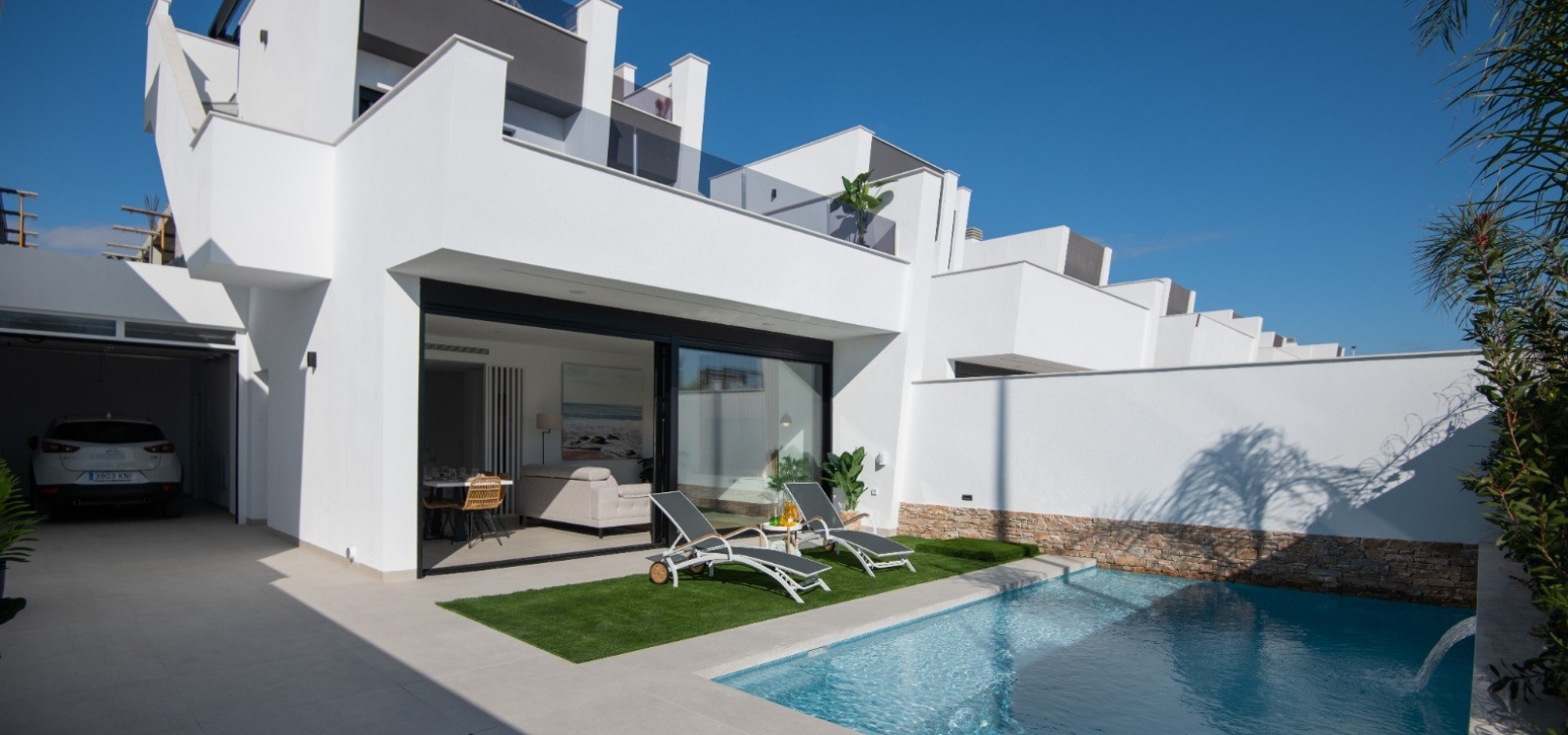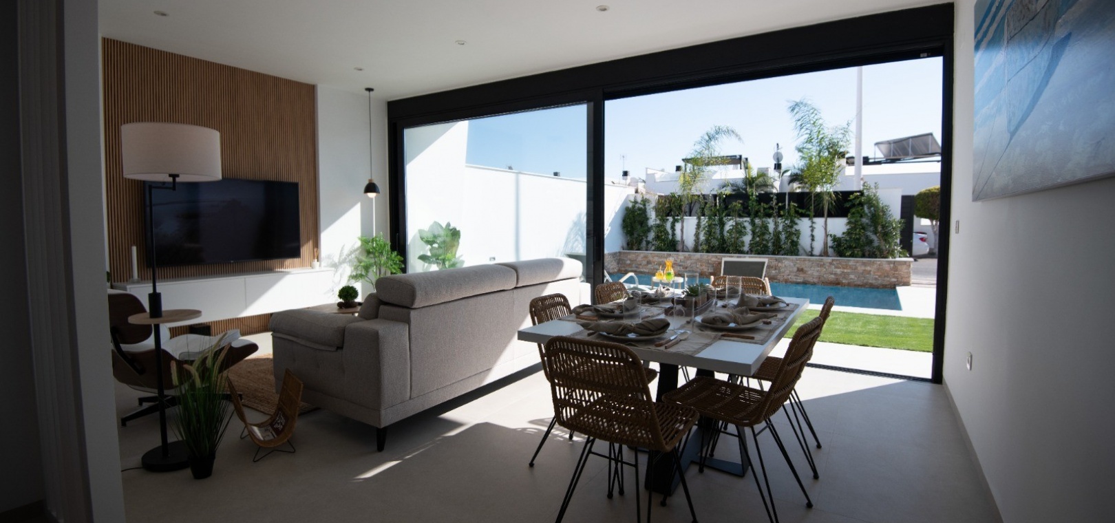 This stunning Ribera Nature villa comprises of a spacious lounge/diner with full width patio doors which lead out into the garden complete with private pool, an open plan kitchen with feature island and fitted appliances including oven, hob, extractor, integrated fridge/freezer and dishwasher, washing machine and microwave, utility/laundry room, closed garage for the car, a double bedroom with fitted wardrobes and a fully fitted bathroom.