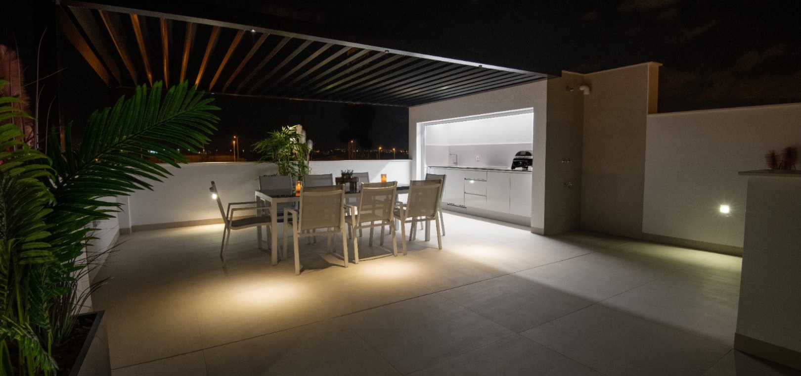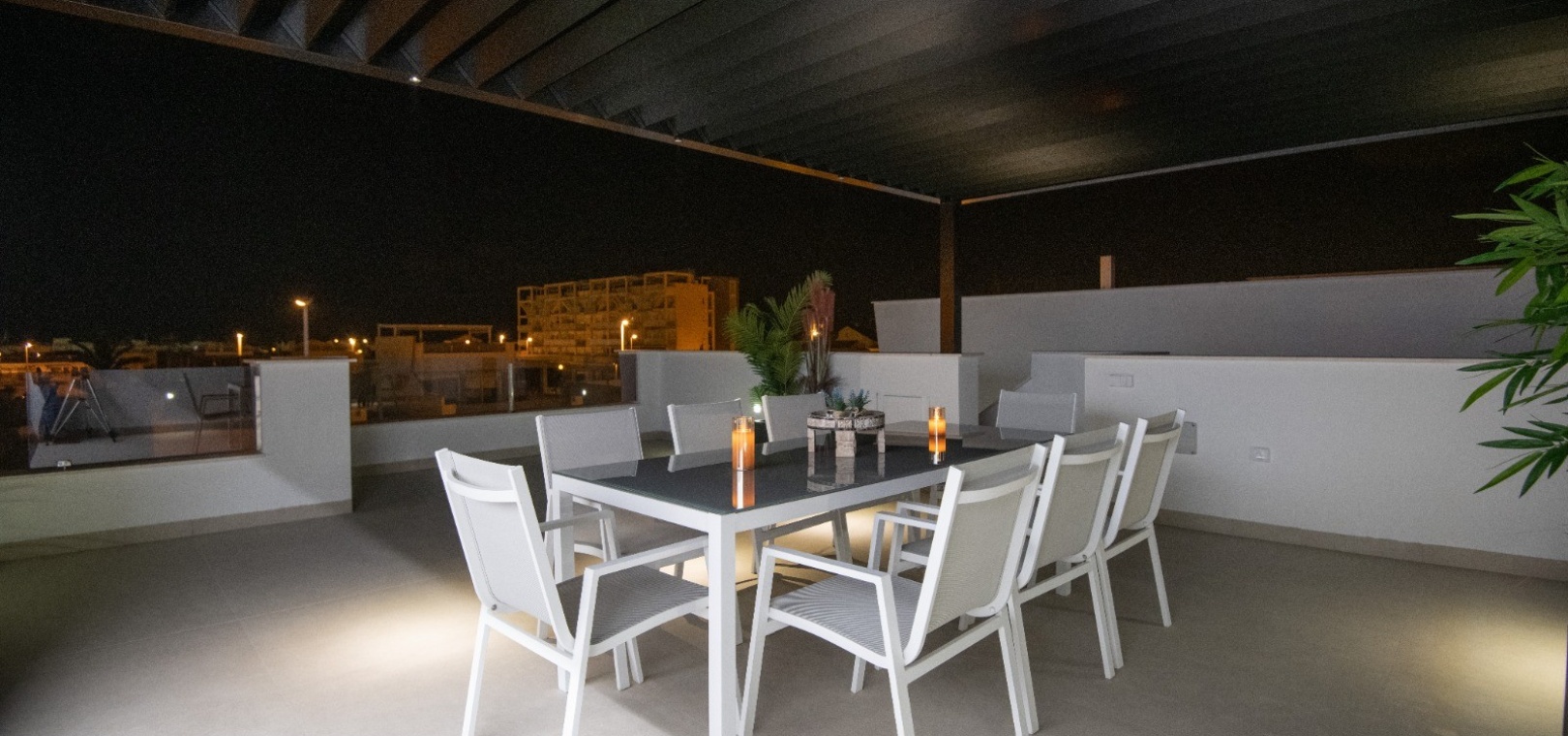 This luxury villa is situated in a mature residential area, just a few minutes walk from the stunning promenade of Santiago de la Ribera and the beaches of Lo Pagan . This property is built to the highest standard and includes a private swimming pool, all lighting, modern kitchen with fitted appliances, rooftop solarium, closed garage, outdoor summer kitchen, external garden speakers and hot/cold air conditioning.
