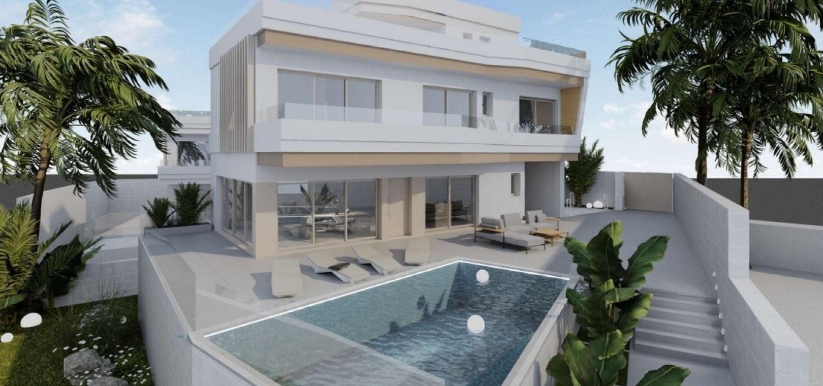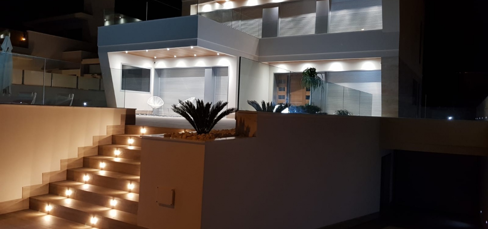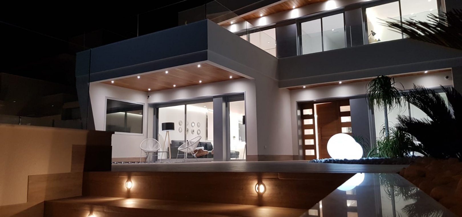 This luxury villa is finished to the highest standard and includes a lift to all floors, hot/cold air vented conditioning, fitted kitchen with appliances, all lighting, private pool and rooftop solarium.