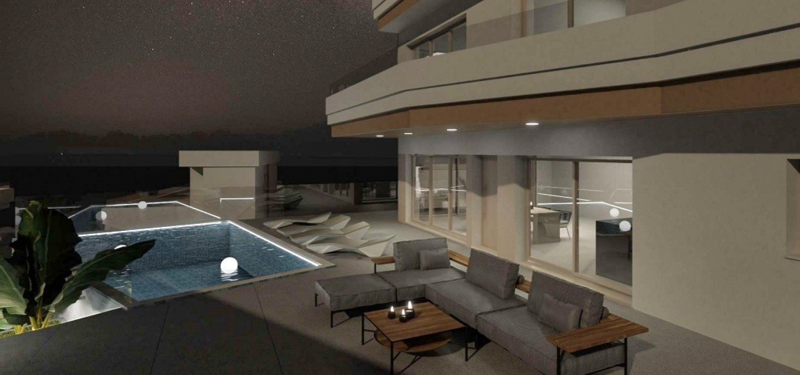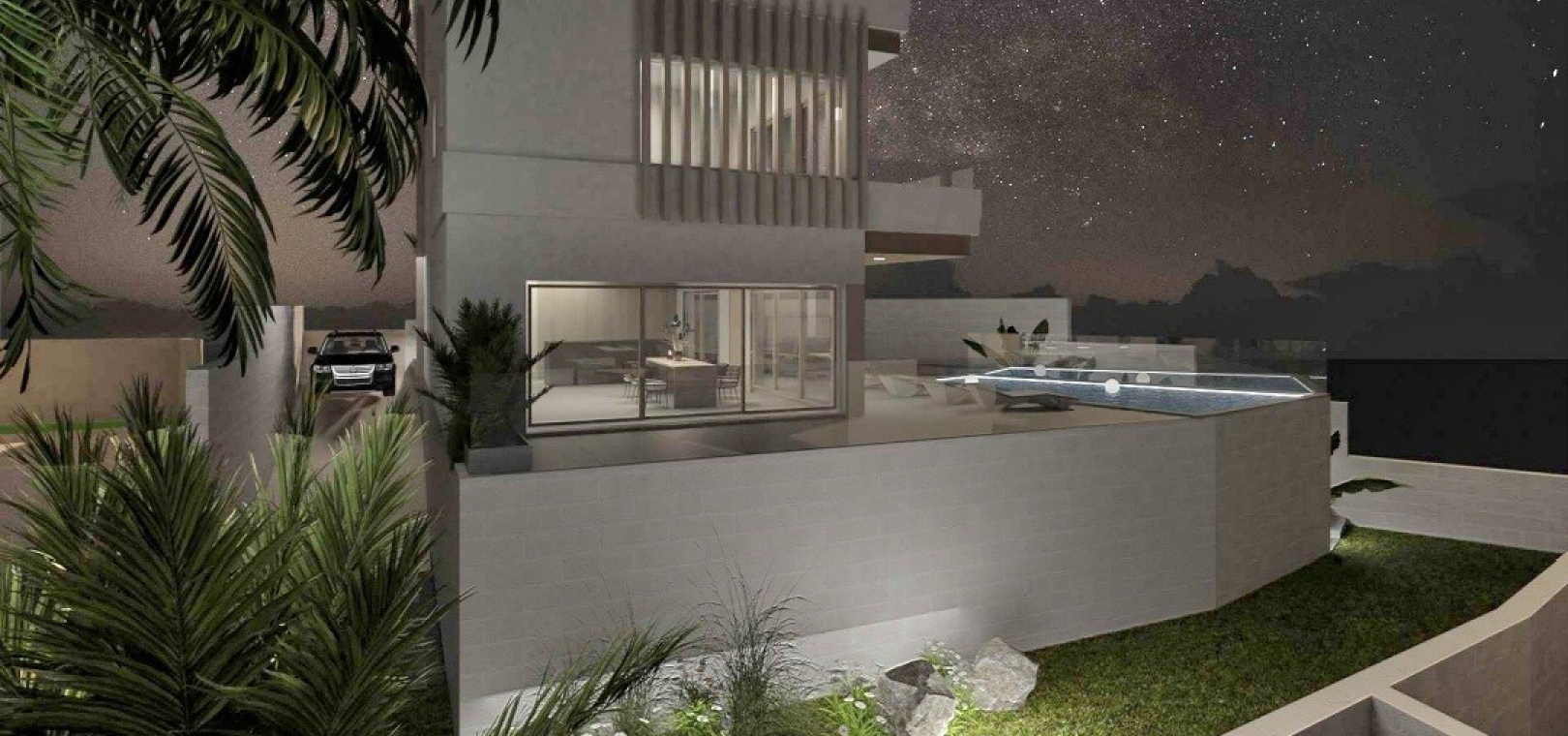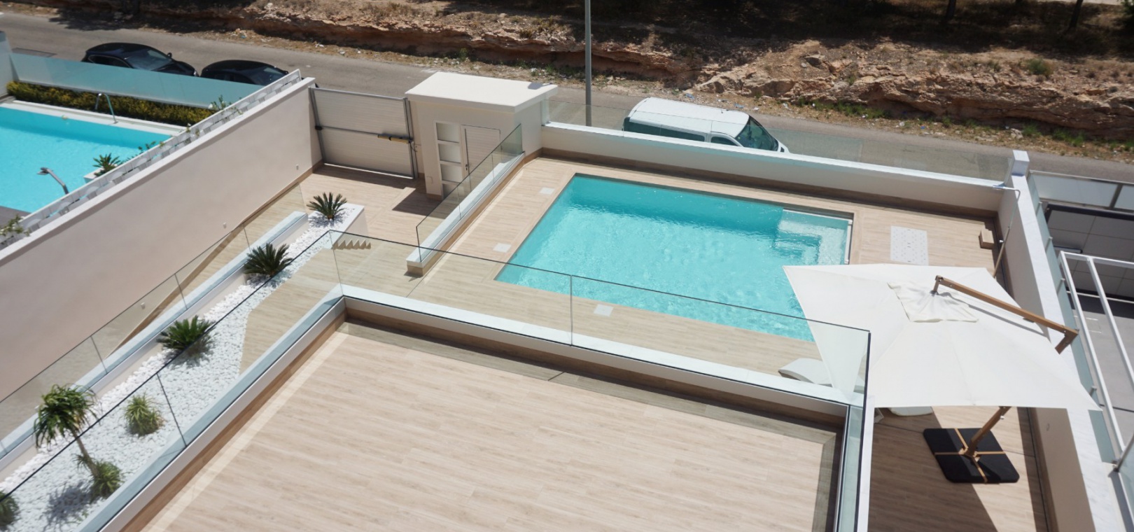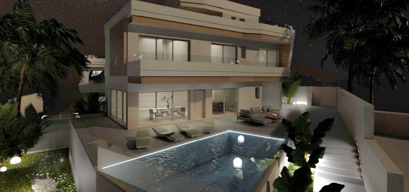 This luxury villa is finished to the highest standard and includes a lift to all floors, hot/cold air vented conditioning, fitted kitchen with appliances, all lighting, private pool and rooftop solarium.