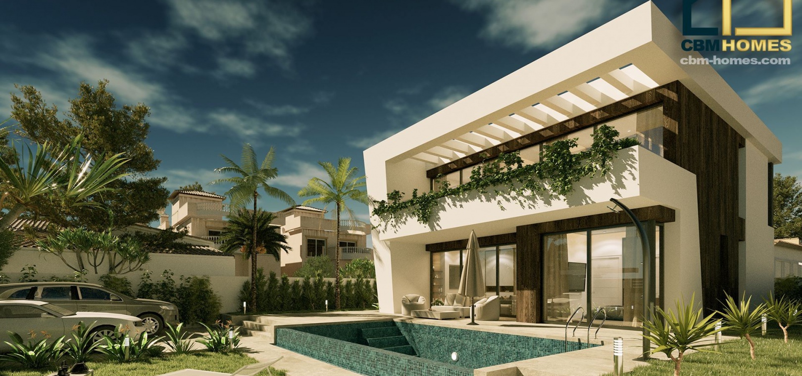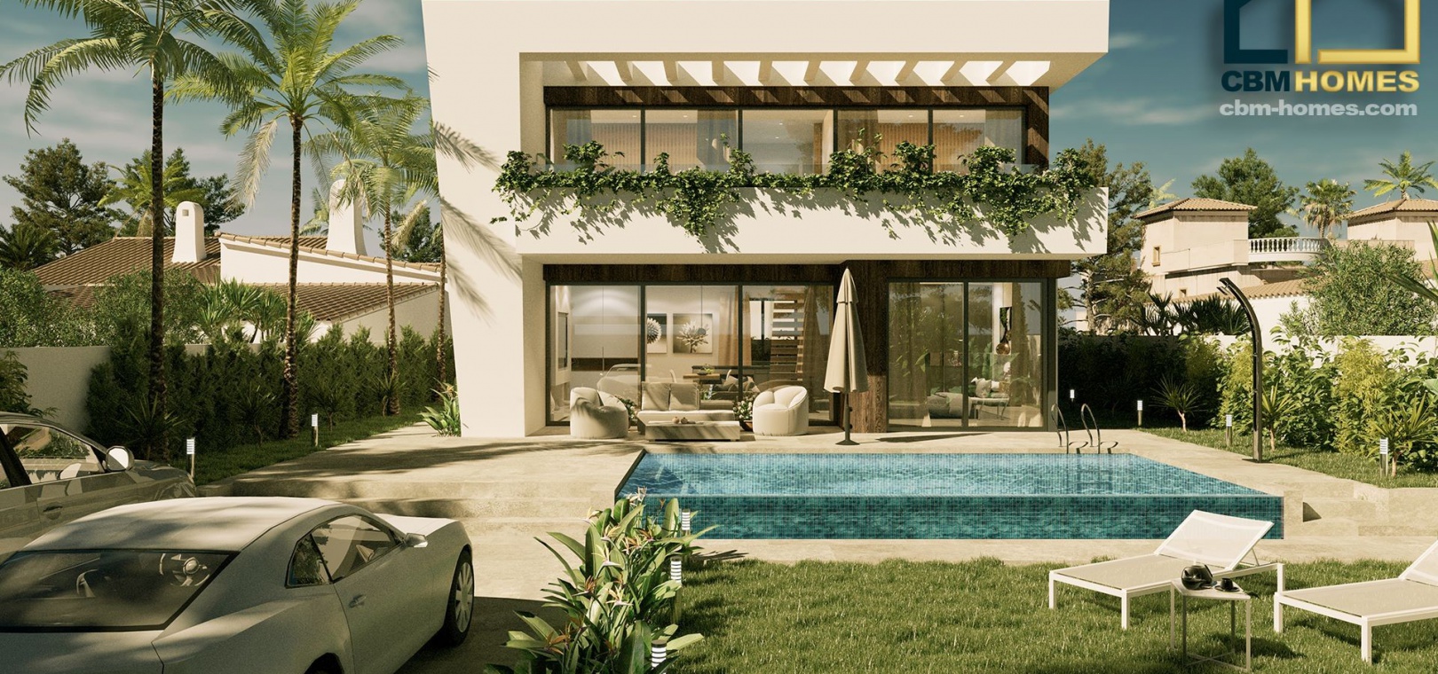 This villa is built using the highest qualities and includes a private pool, rooftop solarium, all inside and outside lighting, pre installation of vented air conditioning and a fully fitted kitchen with appliances.