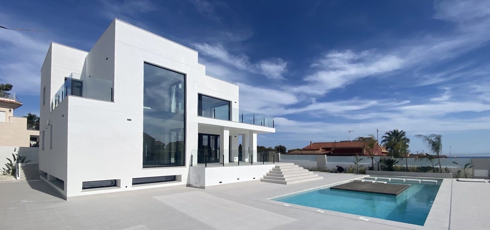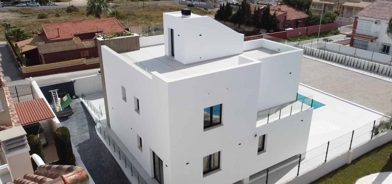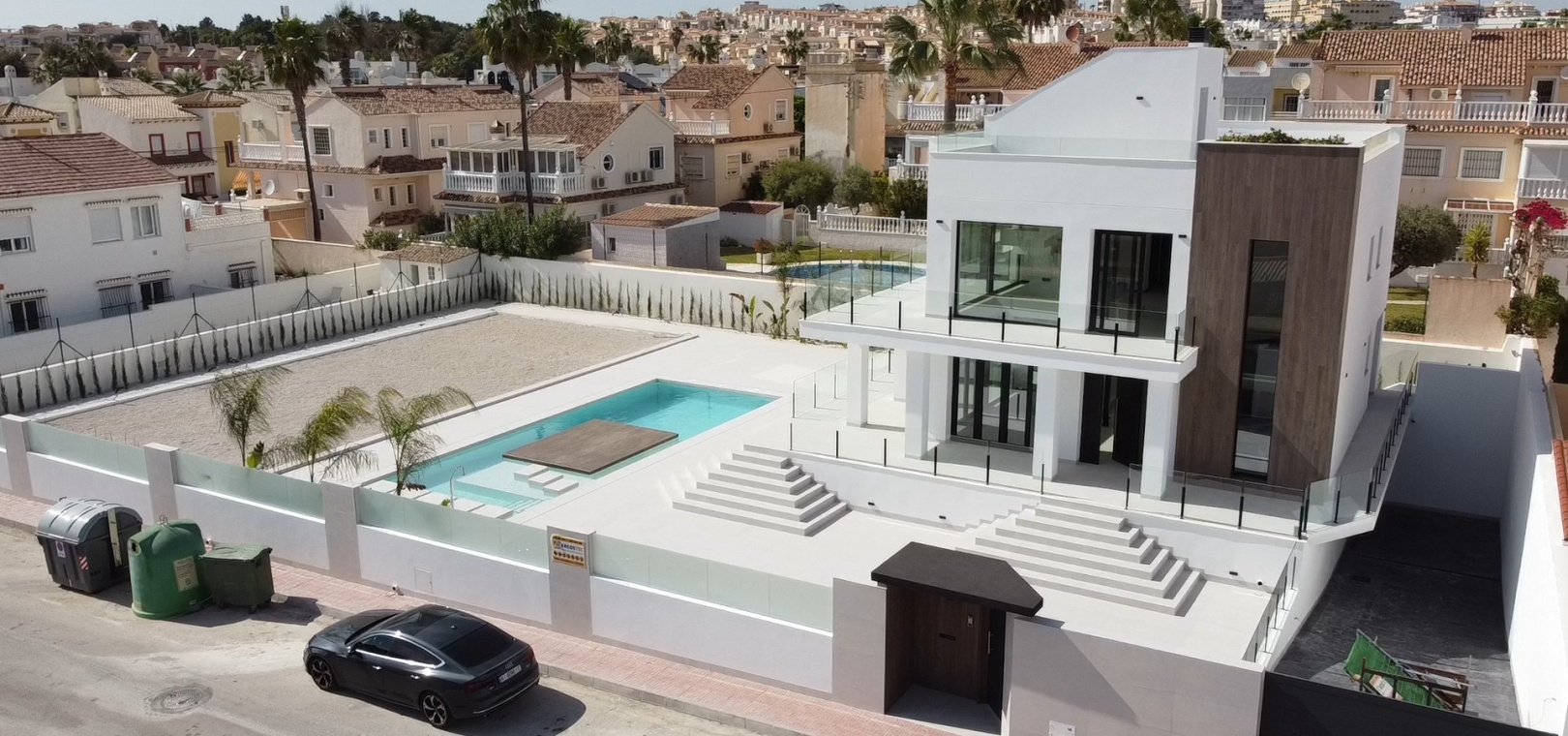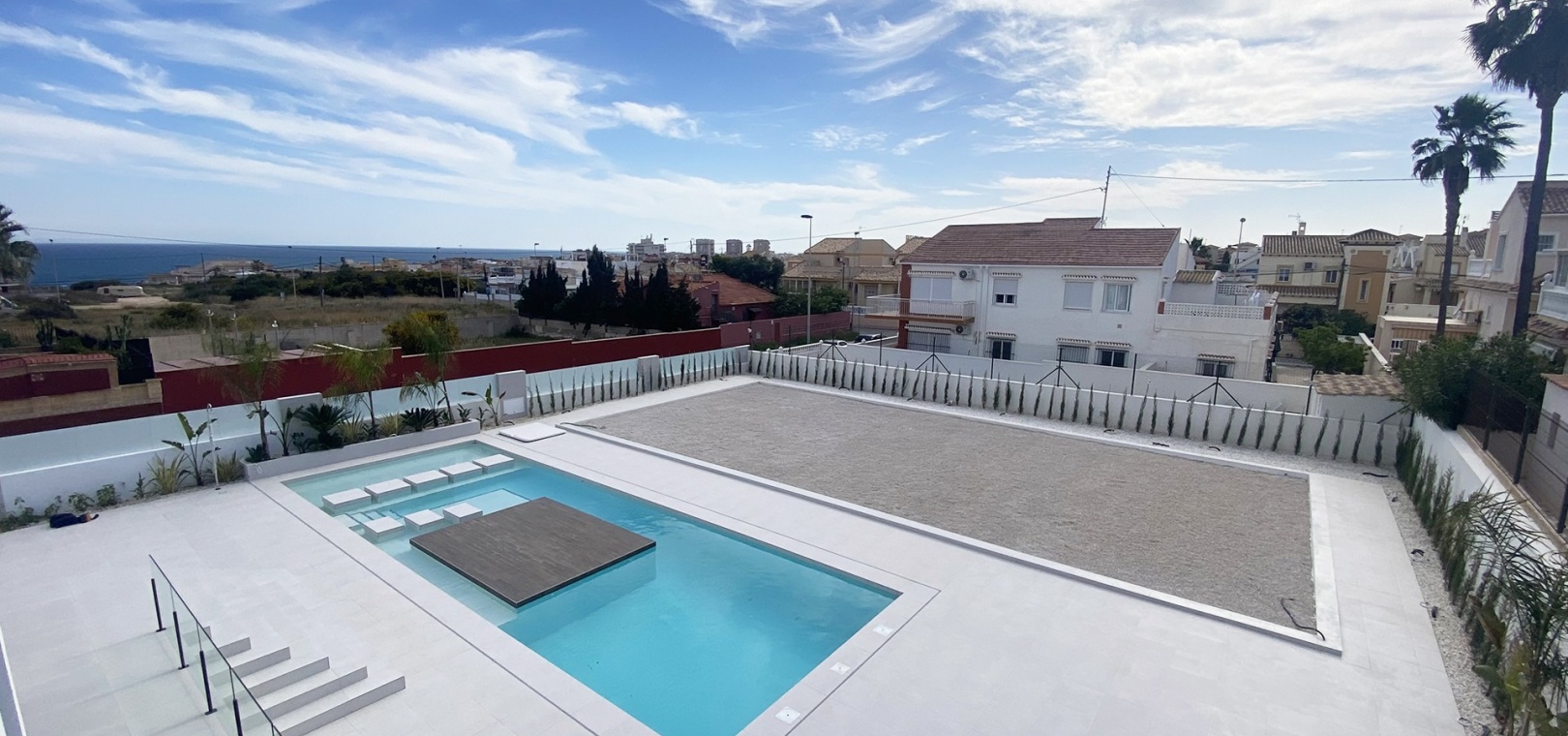 This exclusive villa is situated in Torrevieja, a few hundred metres from the beach and a host of amenities. This large 4 bedroom, 3 bathroom villa includes a large under build with garage, 76m2 swimming pool, rooftop solarium and padel court.