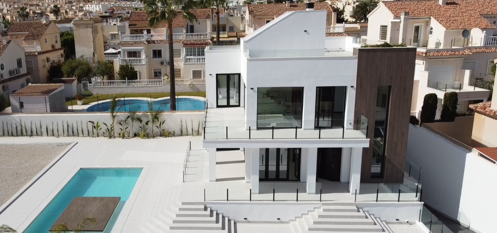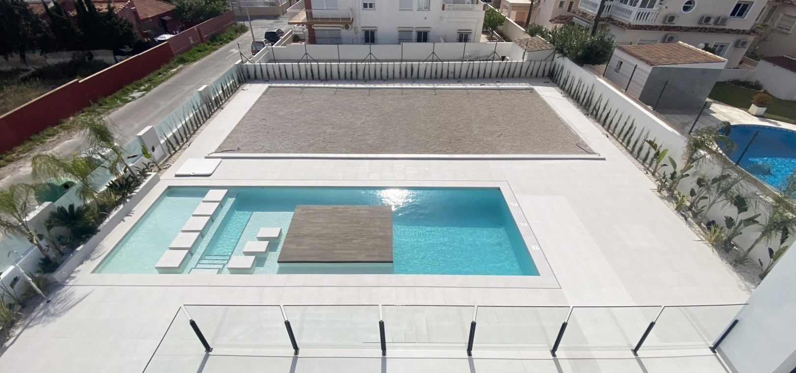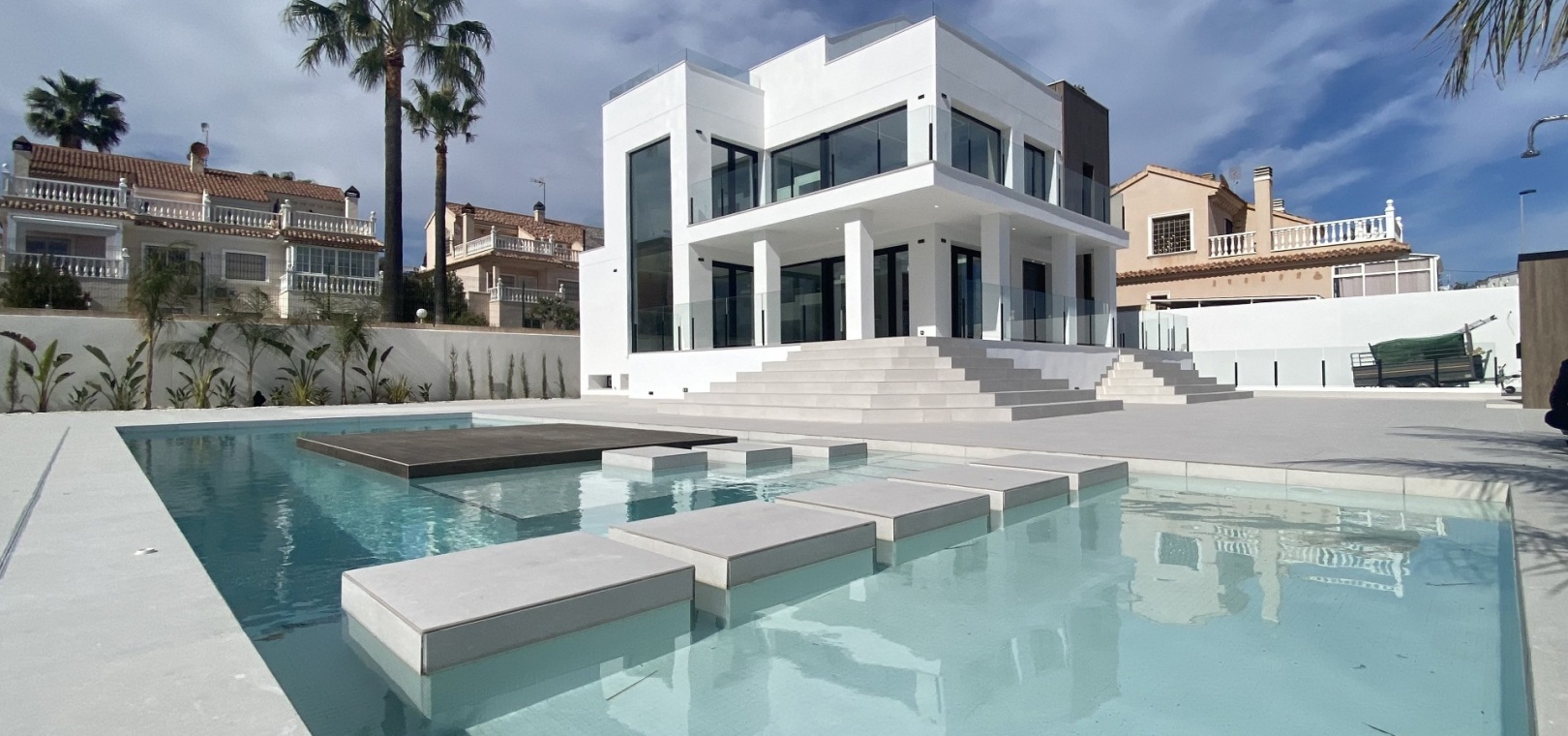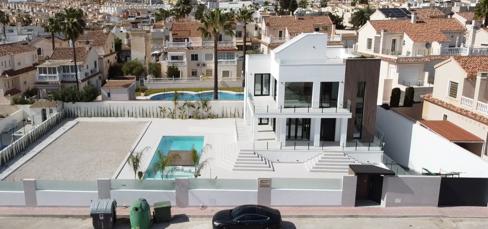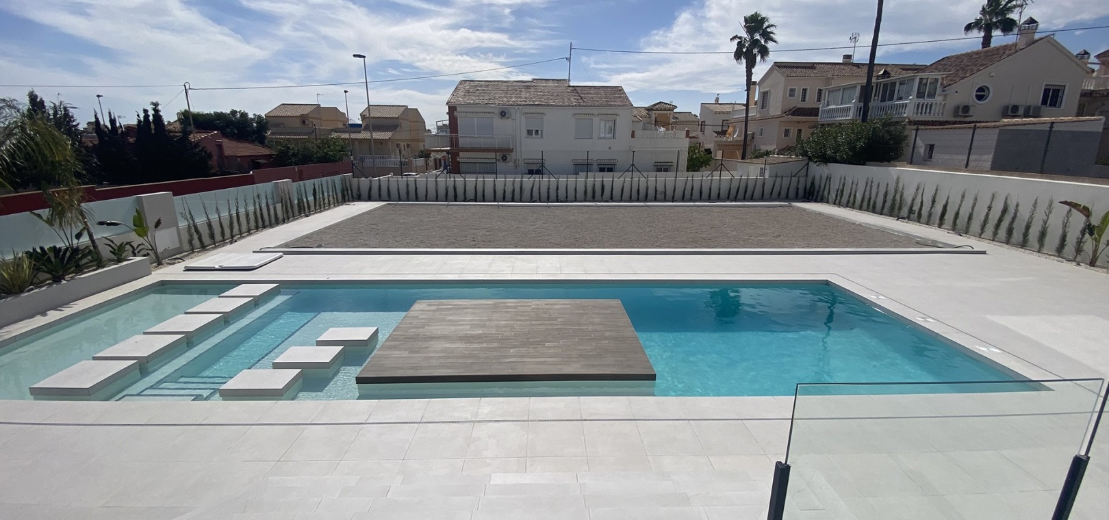 This exclusive villa is situated in Torrevieja, a few hundred metres from the beach and a host of amenities. This large 4 bedroom, 3 bathroom villa includes a large under build with garage, 76m2 swimming pool, rooftop solarium and padel court.