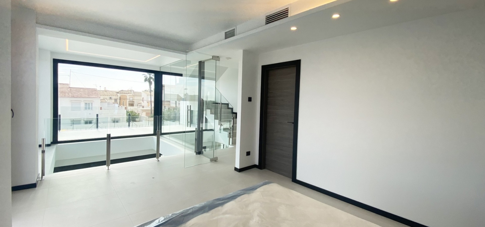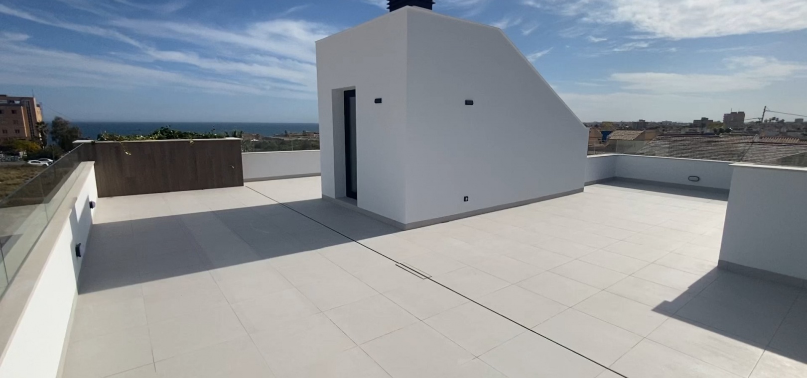 A staircase leads up to the first floor where you have a large master bedroom with fitted wardrobes, en-suite bathroom and access to the sun terrace which has seaviews, another double bedroom also with it's own fitted wardrobes and access to the terrace, a further bedroom with fitted wardrobes and private sun terrace and a fully fitted bathroom.. There is a staircase which leads up to the rooftop solarium which enjoys sea views and all day sun.