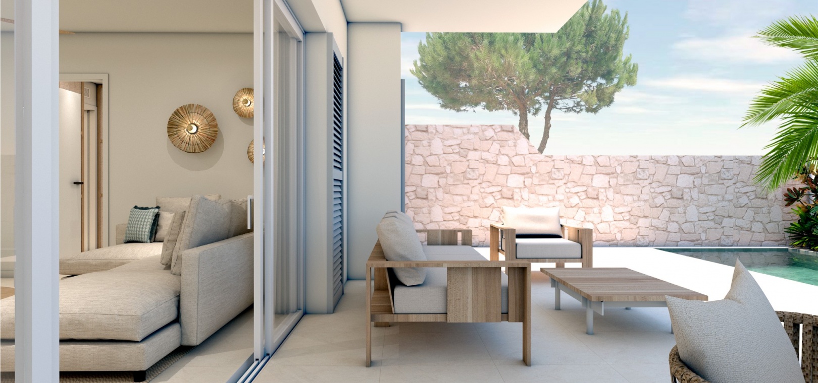 Portomarina Higuericas has just been released and is perfectly located 200 metres from Higuericas Beach in Torre de la Horadada on the Costa Blanca south. This stunning development has options of 3 bedroom apartments available on the ground floor with garden and private pool, penthouse with private solarium and rooftop pool and there are 3 bedroom townhouses also available.