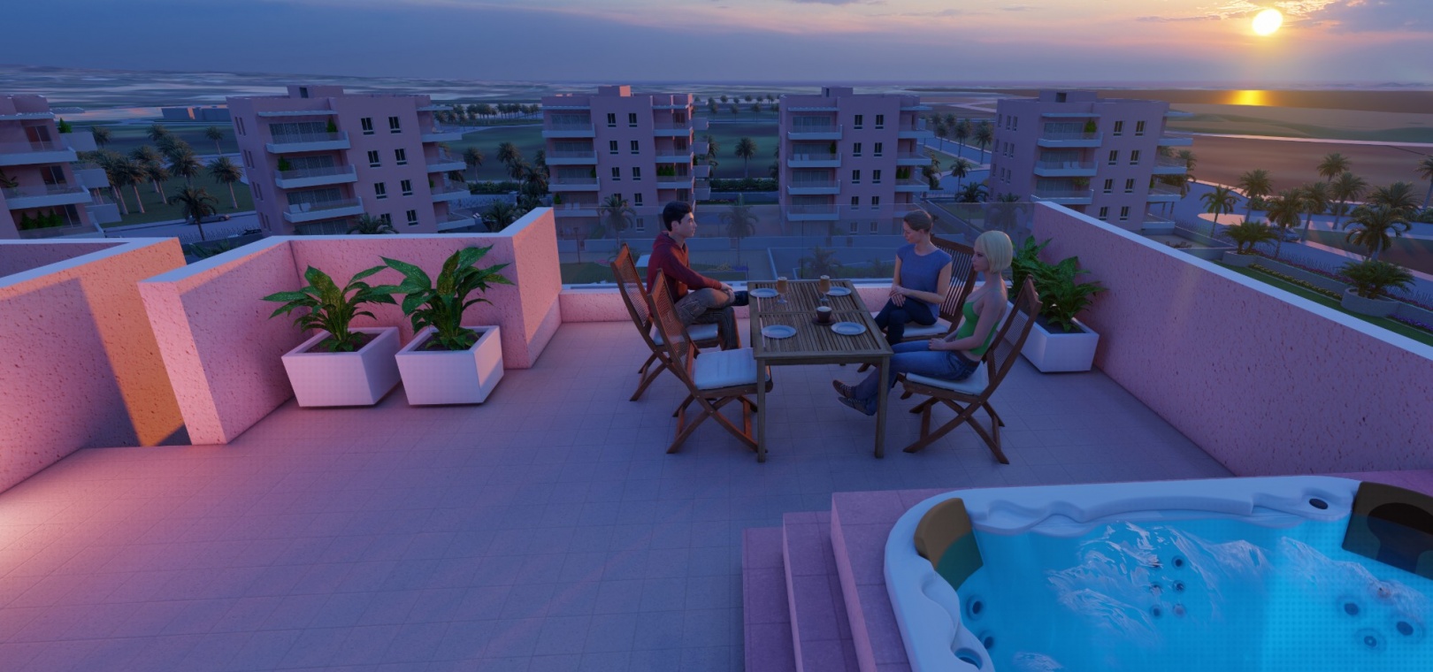 Vista Azul Spa and Nature is high quality modern development of 3 bedroom, 2 bathroom apartments situated in El Raso close to Guardamar, a short drive from the blue flag beaches. El Raso is a mature residential area which has a commercial area with a host of amenities including pharmacy, supermarket, shops, bars and a great choice of restaurants. Alicante city and the international airport are a short 30 minute drive away.