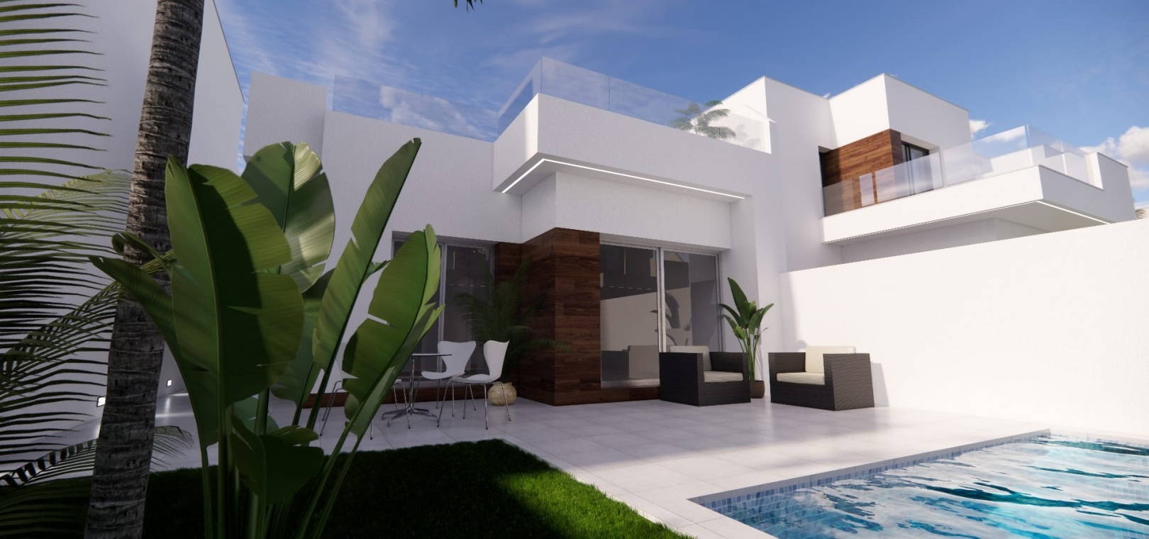 Carla villas resort is a luxury development of detached villas situated in San Fulgencio, a lovely mature residential area in La Marina just a short drive from the beach. These stylish villas have just been released and include a private pool, electric shutters, modern kitchen with appliances, LED lighting, intercom and there is also the option to add a rooftop solarium.