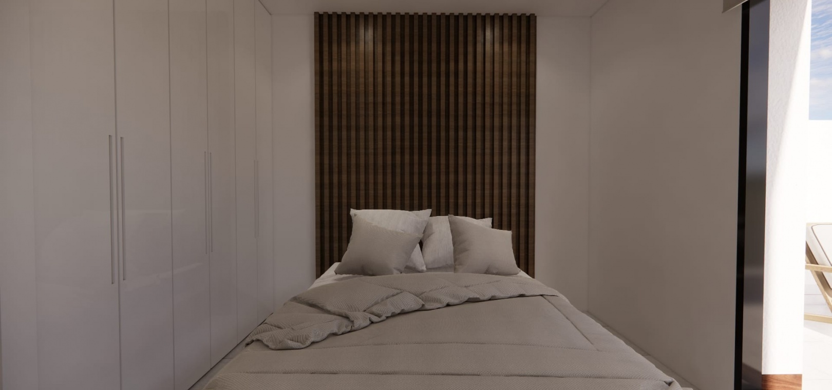 This luxurious villa is built all on one level and consists of a lovely open plan lounge with patio doors which lead out into the garden complete with private pool, a modern fitted kitchen with fitted appliances including oven, hob, extractor, fridge/freezer, washing machine, dishwasher and microwave, dining area, a master bedroom with fitted wardrobes and en-suite, two further double bedrooms with fitted wardrobes and a further fully fitted bathroom. The external staircase leads up to the large private rooftop solarium where you can enjoy all day sun.