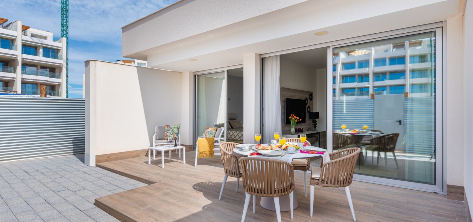 Residential Ema is a luxurious complex situated in Los Dolses, a short walk from the Villamartin plaza and La Zenia boulevard shopping mall. This secure gated development has a selection of 2 bedroom apartments with choices on the ground floor with terrace/garden, 1st/2nd floor with large terrace and penthouse options with private rooftop solarium.