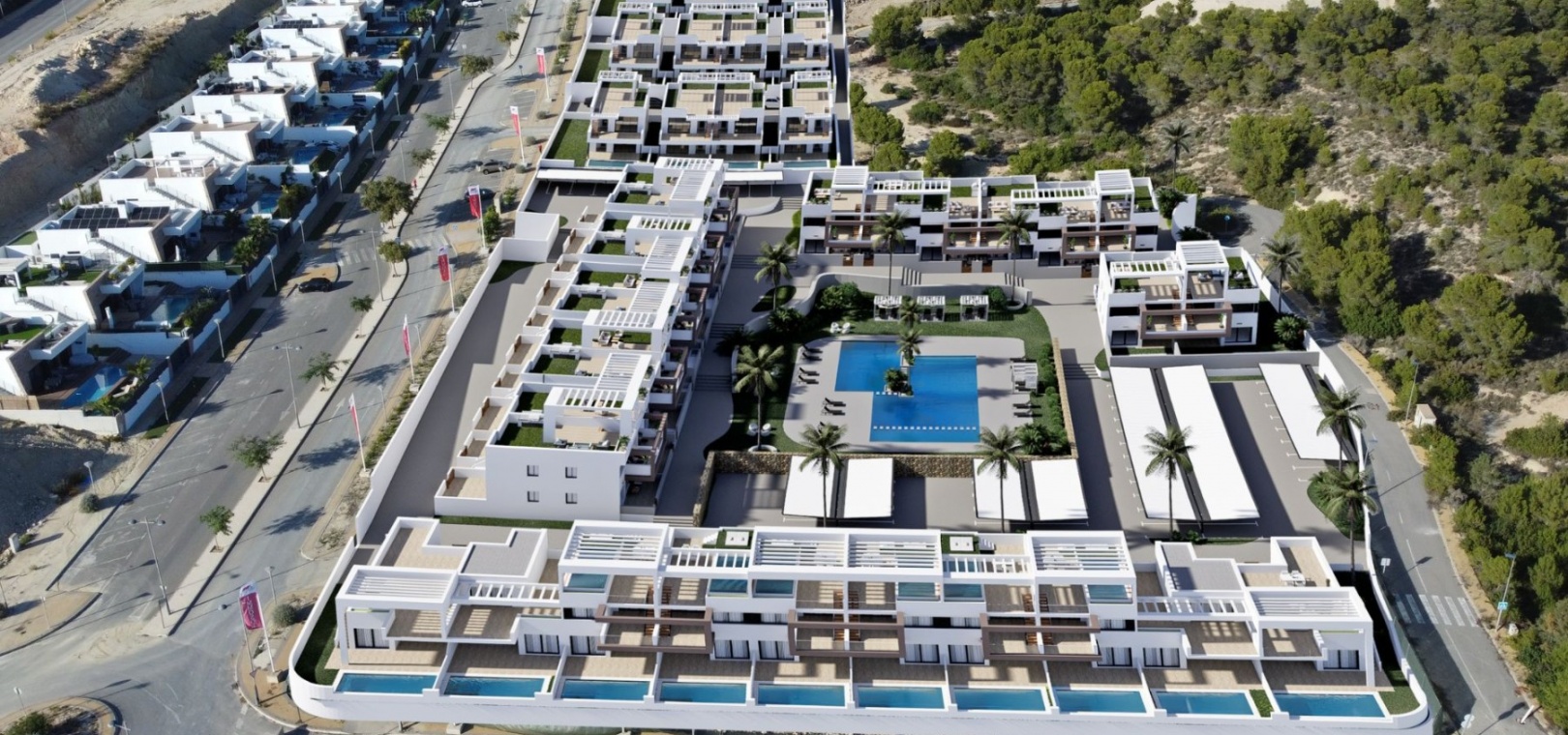 Mirador Hills resort is an luxury exclusive development, situated in Finestrat on the Sierra Cortina hills very close to the bustling town of Benidorm. The resort enjoys panoramic views of the sea, is a 5 minute drive to a shopping mall and a host of amenities and a short 10 minute drive from the stunning beaches of Benidorm. There is the famous Terra Mitica theme park, a water park, a go karting track and 2 golf courses a few minutes away from the property.