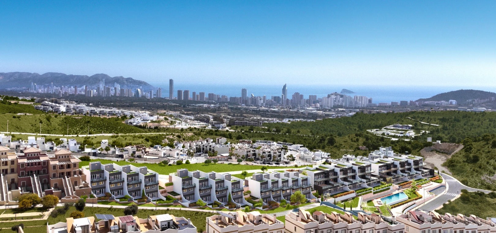 Residential Breeze resort is an luxury exclusive development, situated in Finestrat on the Sierra Cortina hills very close to the bustling town of Benidorm. The resort enjoys panoramic views of the sea, is a 5 minute drive to a shopping mall and a host of amenities and a short 10 minute drive from the stunning beaches of Benidorm. There is the famous Terra Mitica theme park, a water park, a go karting track and 2 golf courses a few minutes away from the property.