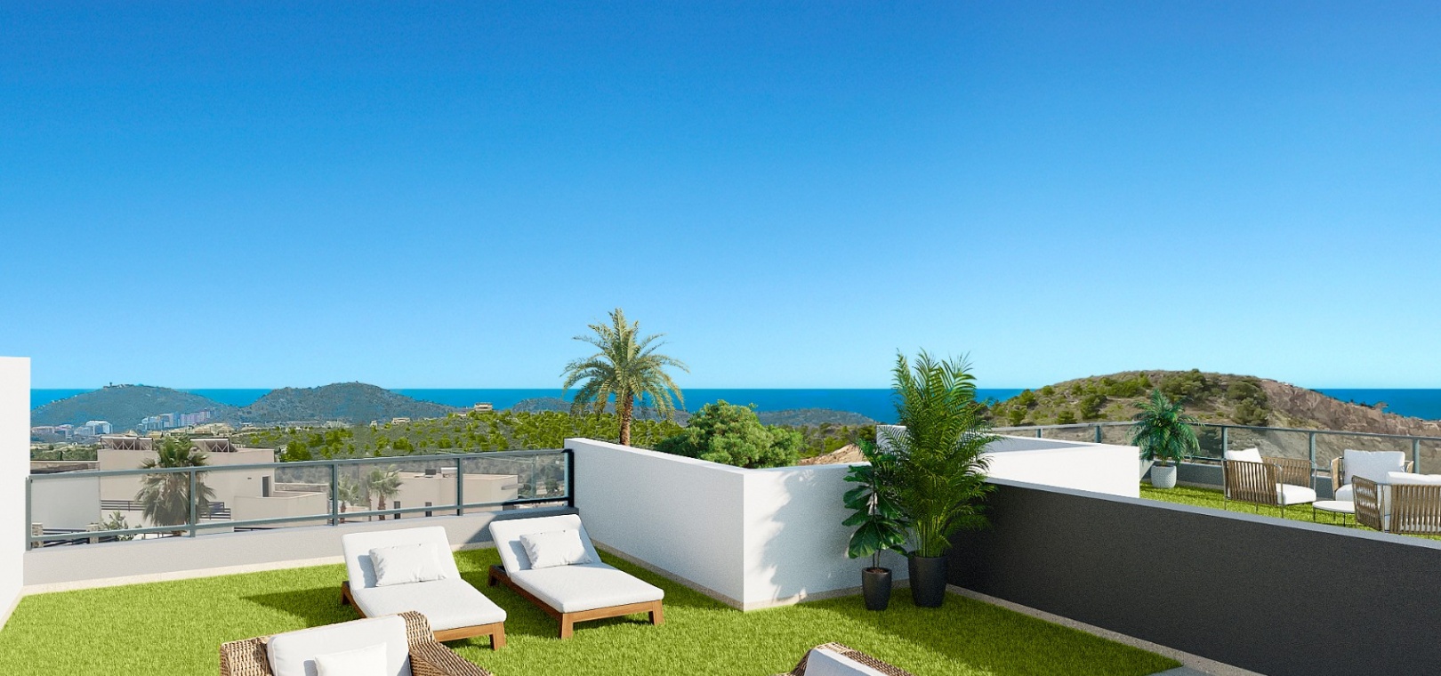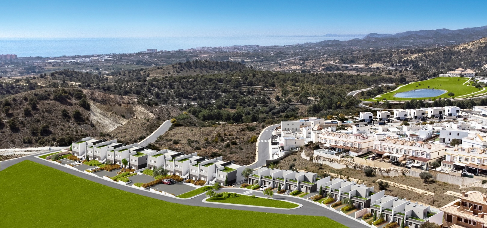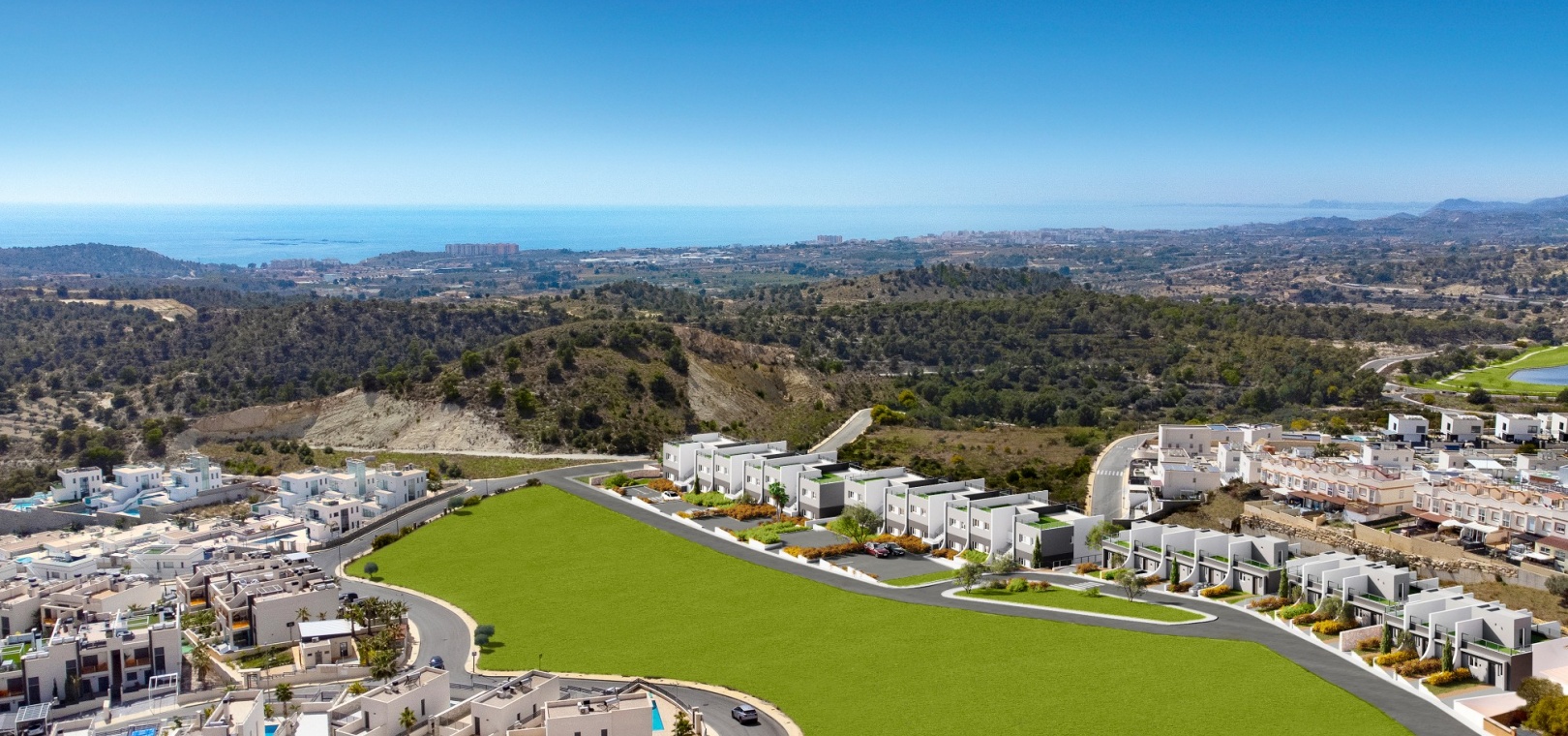 Residential Breeze resort is an luxury exclusive development, situated in Finestrat on the Sierra Cortina hills very close to the bustling town of Benidorm. The resort enjoys panoramic views of the sea, is a 5 minute drive to a shopping mall and a host of amenities and a short 10 minute drive from the stunning beaches of Benidorm. There is the famous Terra Mitica theme park, a water park, a go karting track and 2 golf courses a few minutes away from the property.