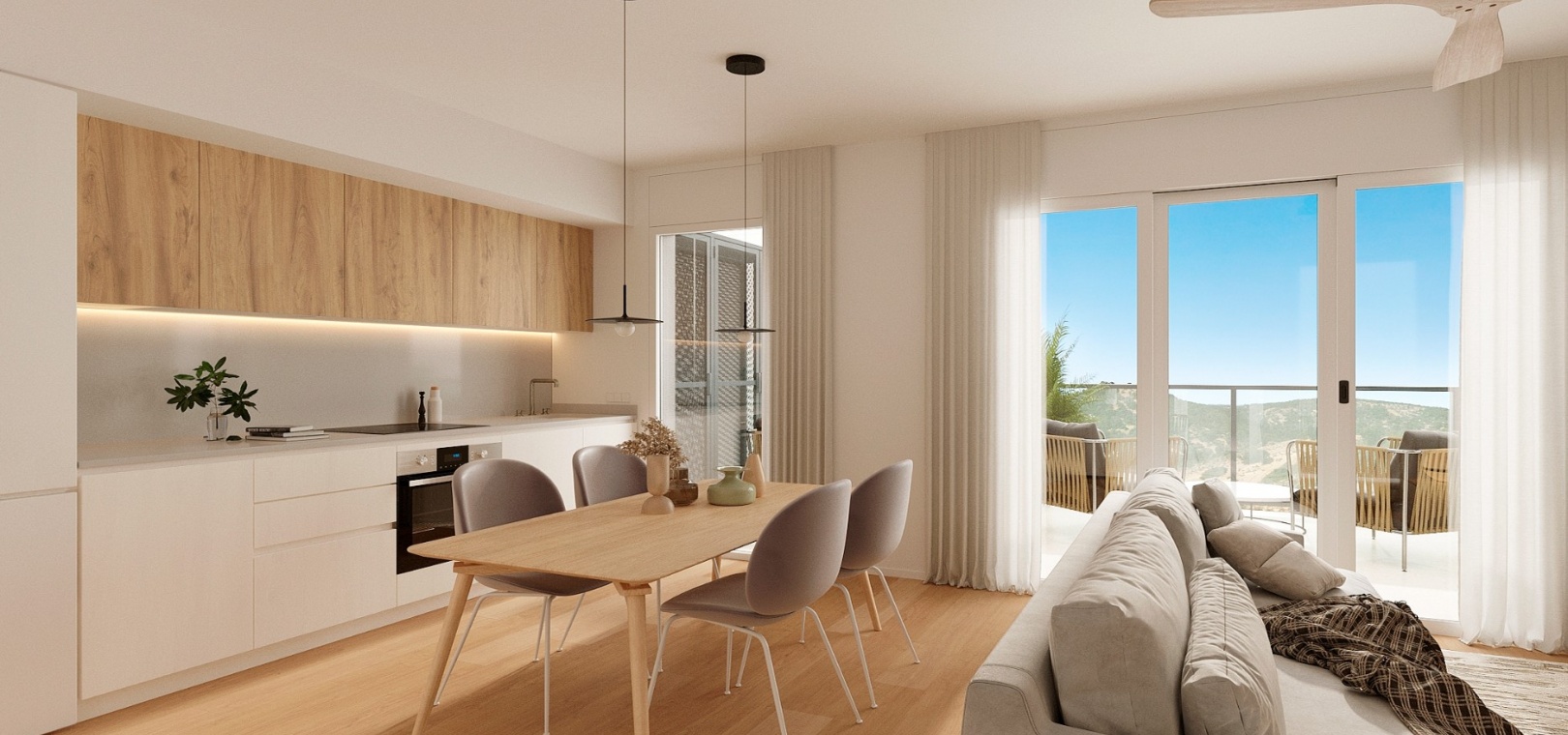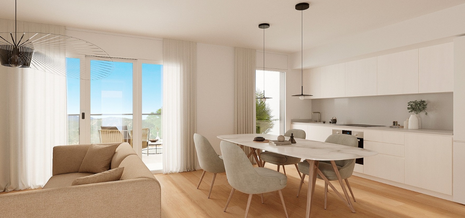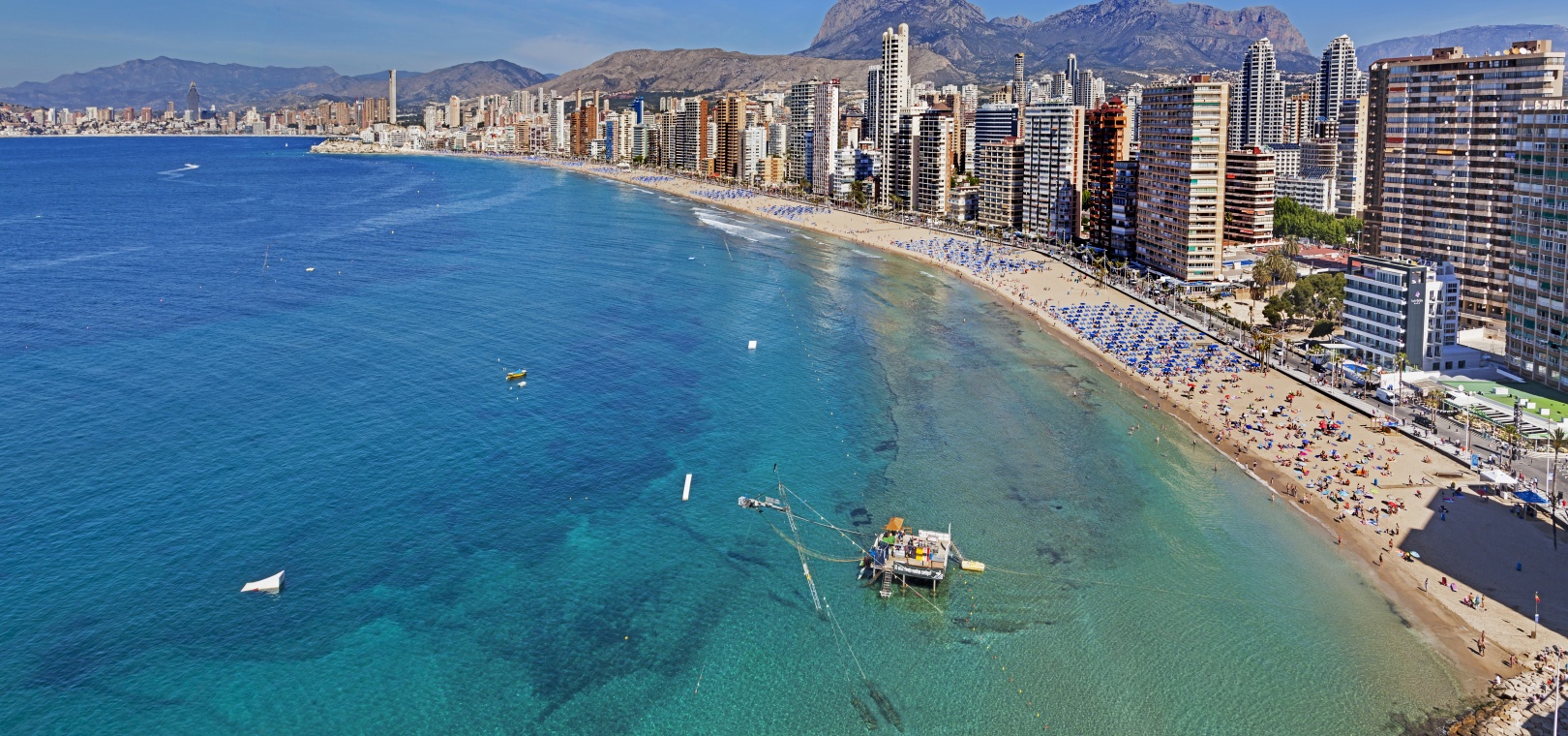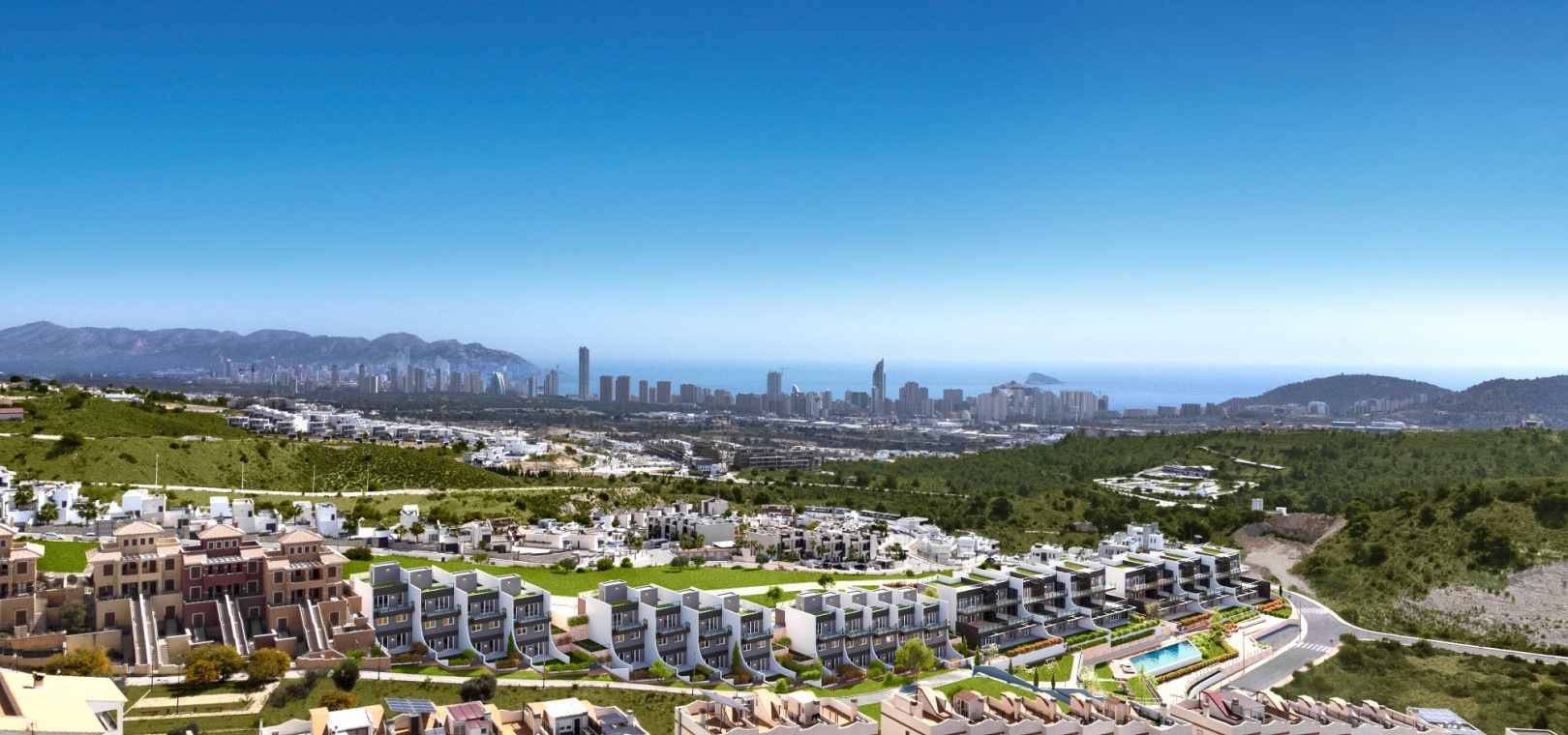Finestrat is the picturesque village with ‘hanging houses’, snuggled under the legendary Puig Campana mountain peak…with winding streets of traditional townhouses, balconies filled with flowers, typical plazas and an impressive XVIII century church. Benidorm town has 4km of golden beaches and has a shopping mall and a wides selection of amenities including beachfront bars and restaurants, banks, supermarkets, pharmacies, shops, boutiques and a famous nightlife.