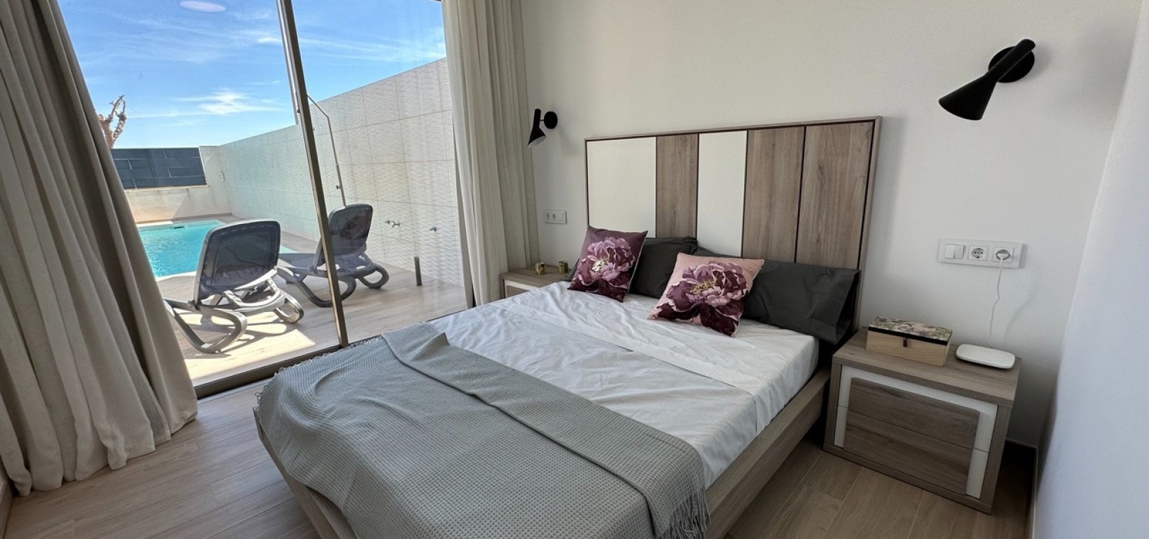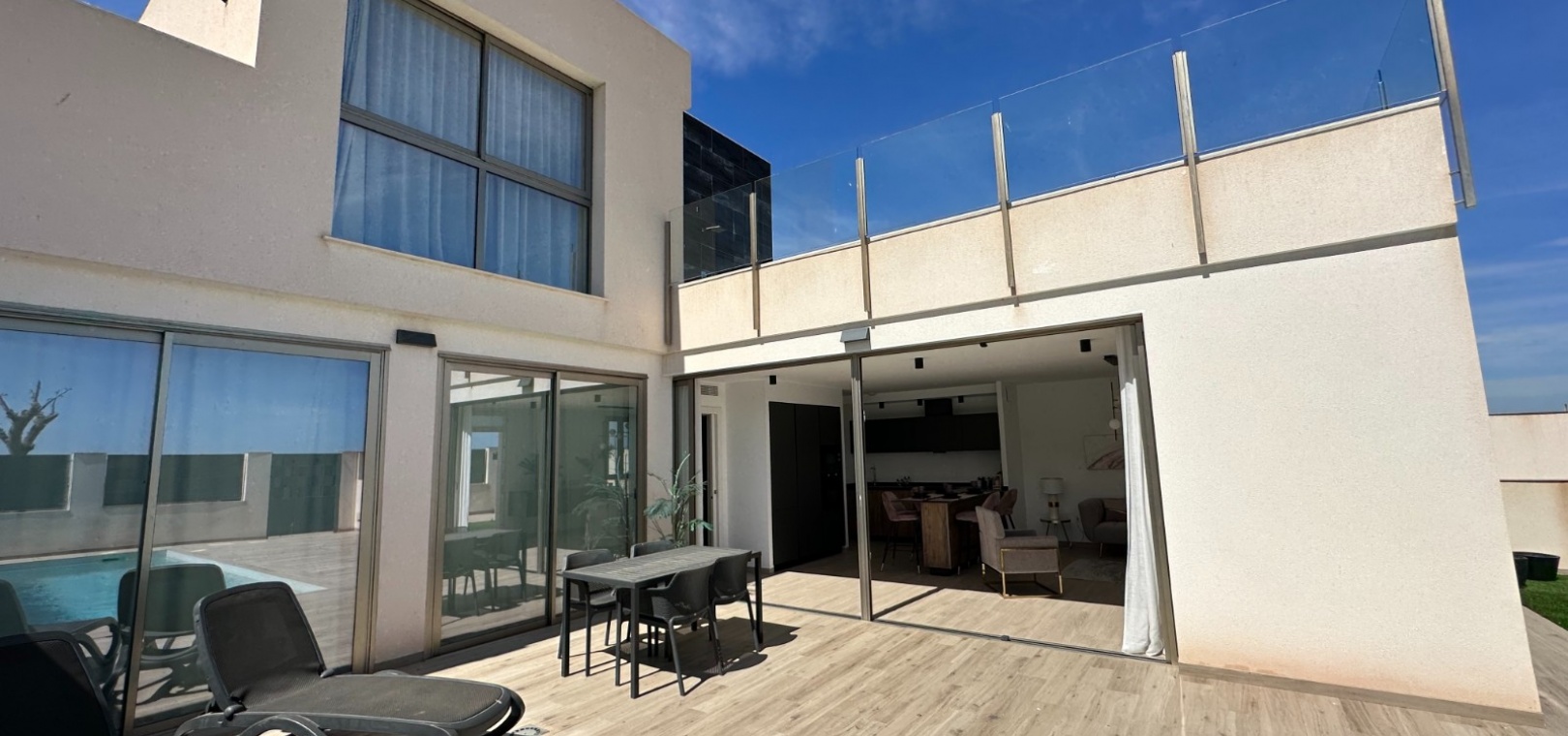 This stunning key ready property is built to the highest standard and comes fully furnished, with a private swimming pool, modern kitchen with fitted appliances, hot/cold air-conditioning, LED lighting and an under build with garage for 2 cars.