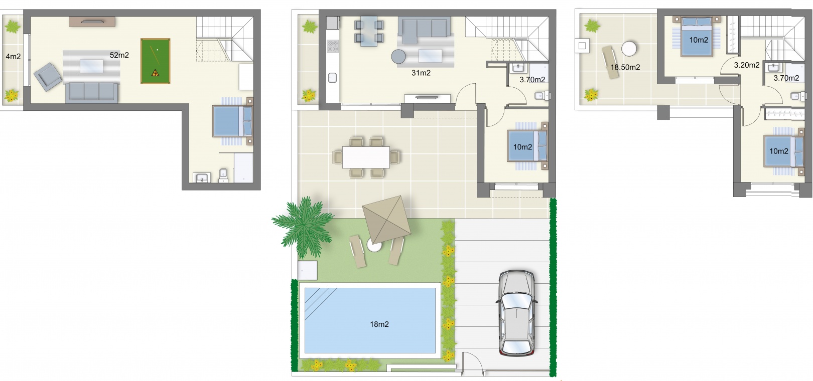Villas Palma is a new development of 24 villas situated in Dona Pepa near Quesada of which the majority will have underbuilds that can be finished to living standard or left as storage. All underbuilds will have natural sunlight and ventilation as there is a lower terrace for each one. All of the villas have 3 bedrooms and 2 bathrooms but a fourth bedroom with bathroom can be added to the under build level.