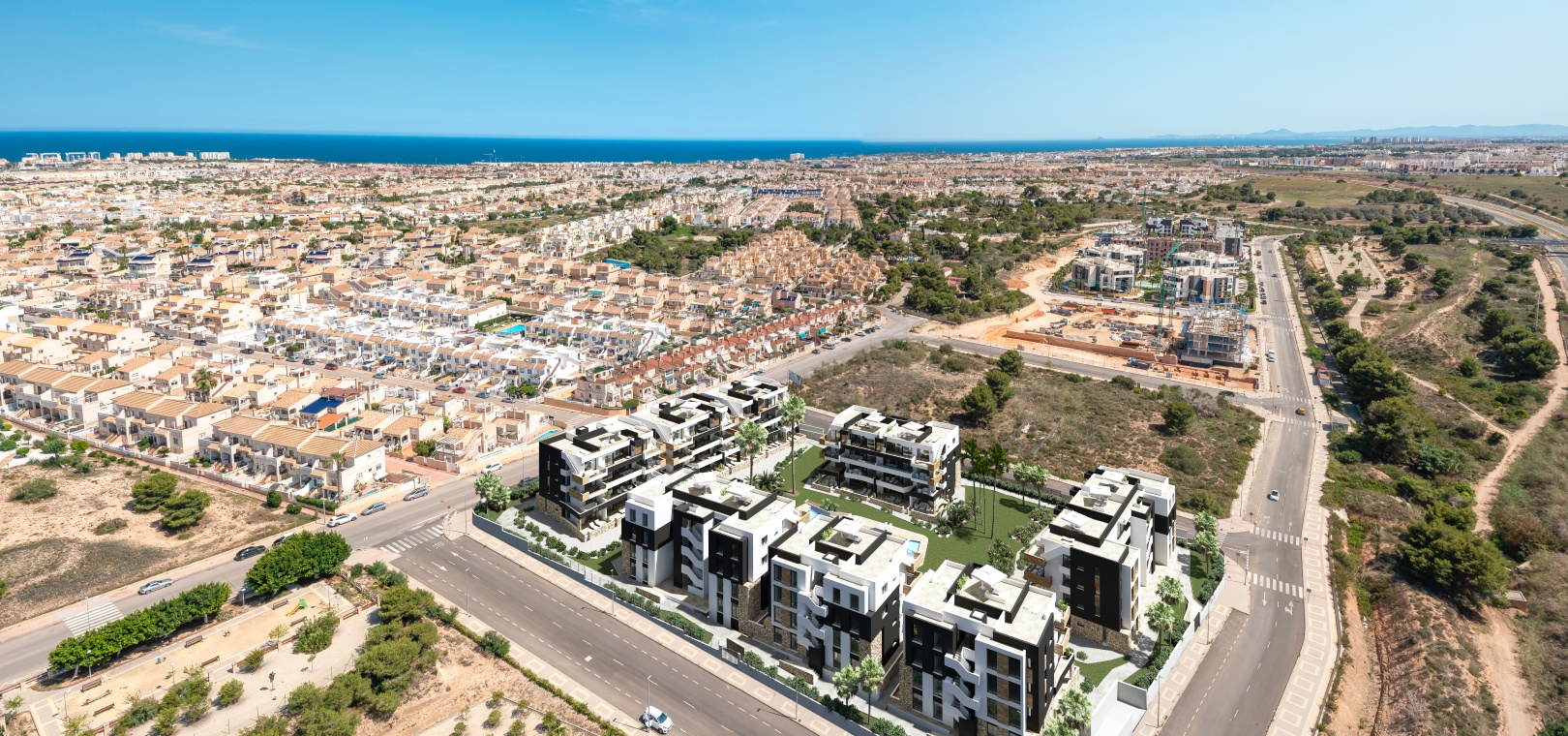El Amanecer 11 is a quality development located in a central location within walking distance from Villamartin, Playa Flamenca and Los Altos. La Zenia boulevard and the blue flag beaches are just a short driveaway. El Amanecer 10 features a selection of 2 bedroom, 2 bathroom apartments finished to the highest standard with everything included in the price. There is the choice of ground floor with garden/terrace, mid floor with terrace and penthouse with solarium options also.