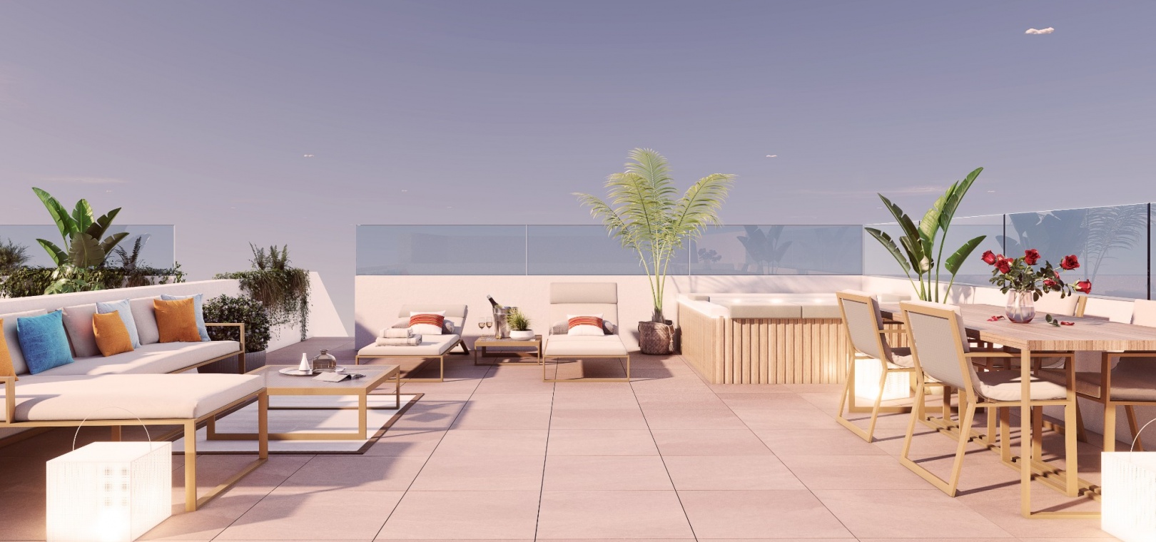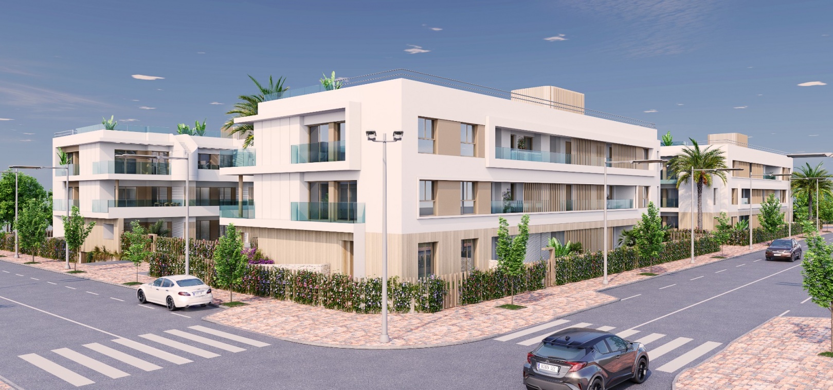 There are 2/3 bedroom options on the ground floor with terrace/ garden, 1st floor with sun terrace and luxury penthouse options with private rooftop solarium.