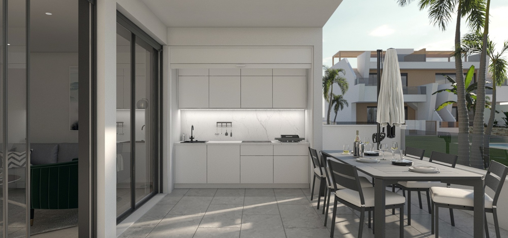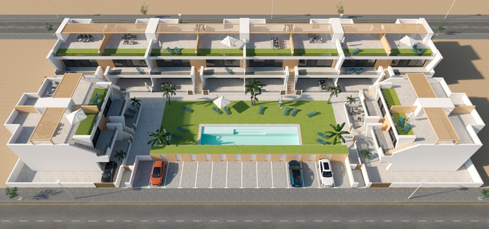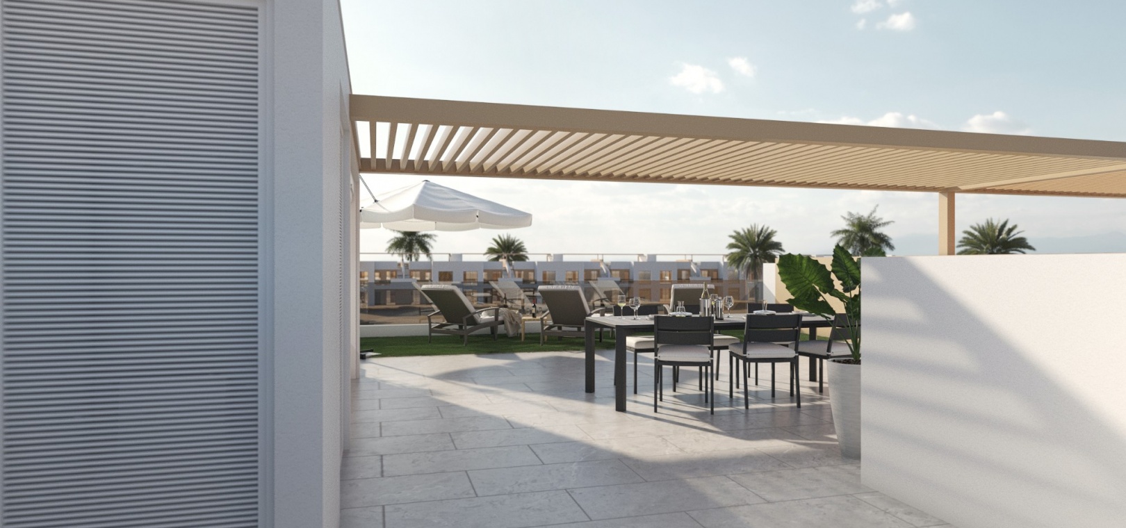 La Llana beach and city is a luxury development of apartments situated in a lovely mature residential area in Lo Pagan, 850 metres from the stunning beach, a host of amenities and the Dos Mares shopping centre. There are ground floor apartments with gardens or penthouse options with private rooftop solariums available and there is a communal garden complete with swimming pool.