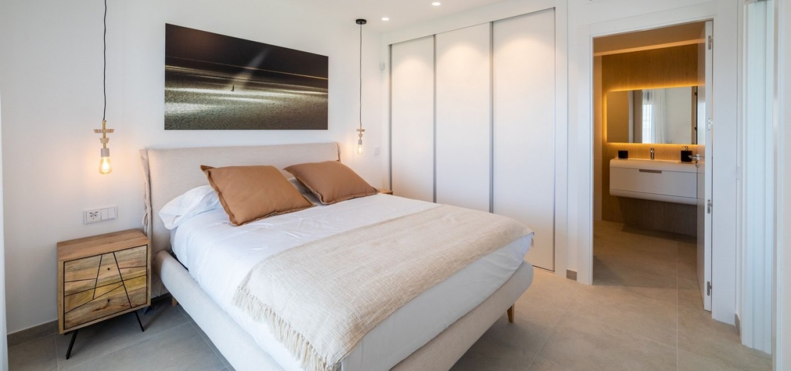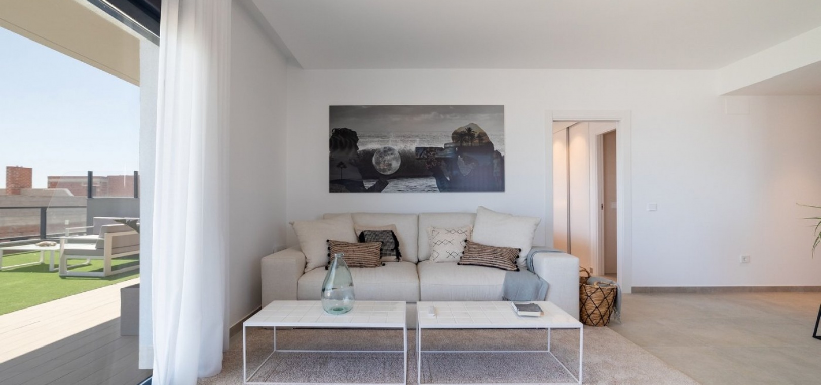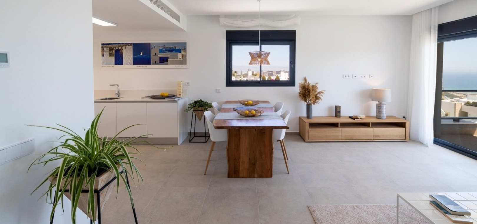 The 2 and 3 bedroom, 2 bathroom apartments have a carefully designed distribution and enjoy beautiful views of the sea, the beach and the pool and private gardens at the development.