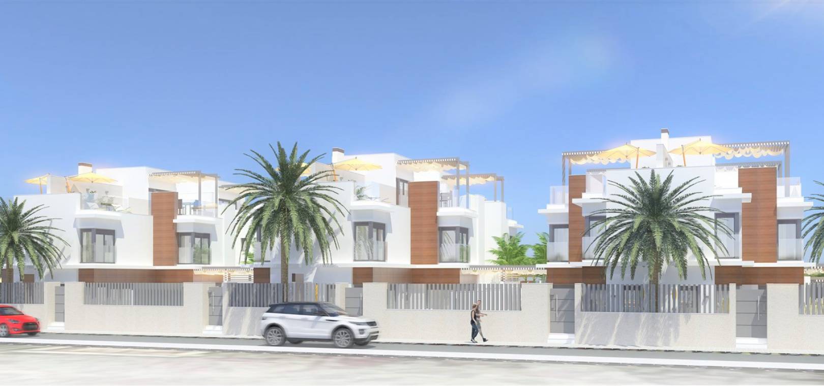 We rarely have the opportunity to develop modern new build villas for sale in such a great location close to the beach and all the amenities of the lovely town of Santiago de la Ribera. Just 400m to the stunning beaches of the Mar Menor in a quiet enough location but with everything on your doorstep. Alicante airport is just a 45-minute drive with the new airport of Corvera just 30 minutes away.