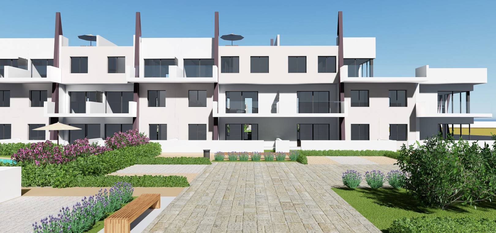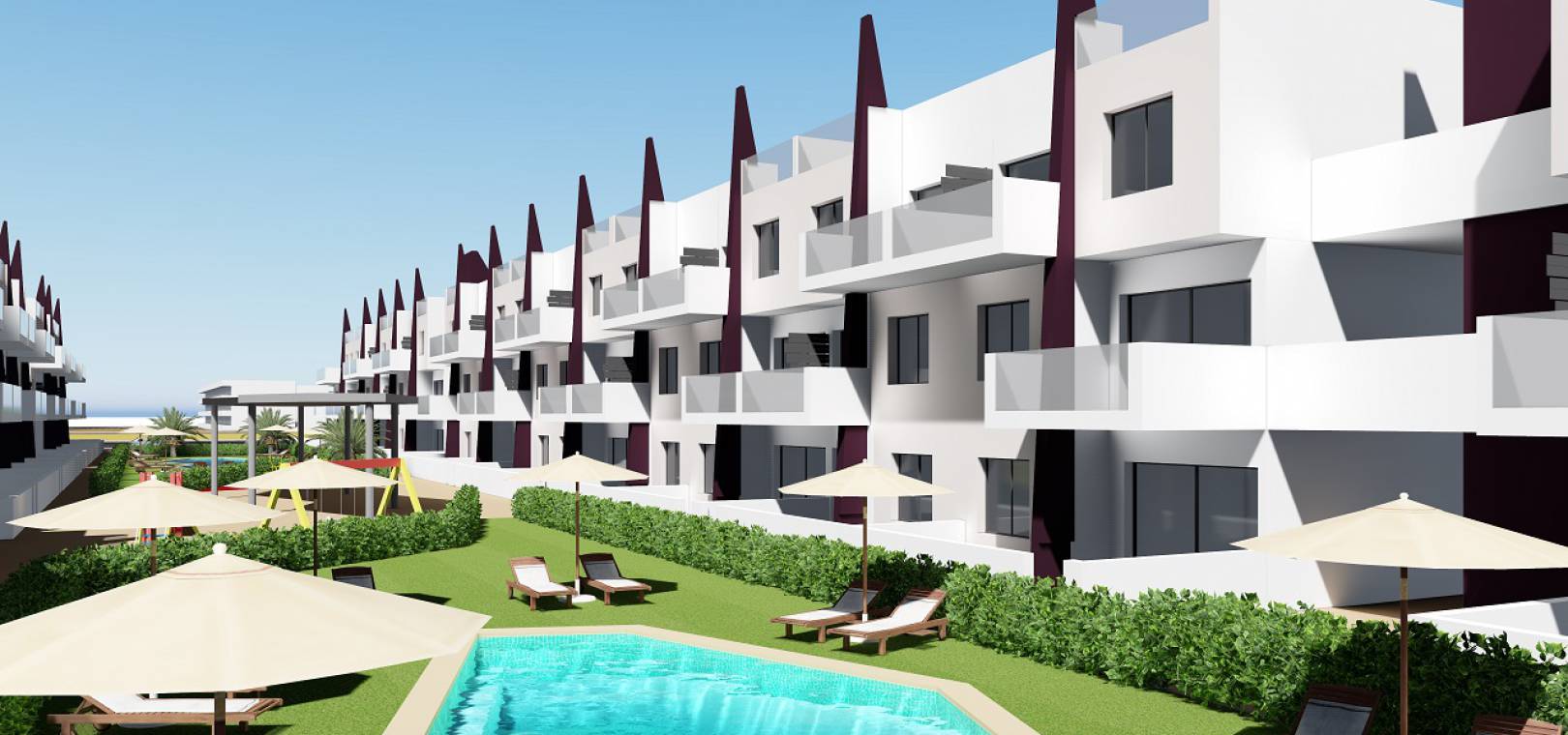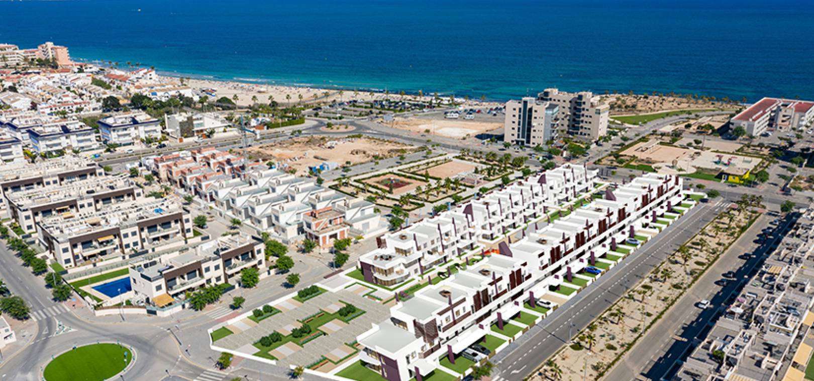 Here we have a fabulous new development of modern, stylish 2 and 3 bed bedroom apartments, communal pools, play areas and off-street parking very close to the beach at Mil Palmeras.