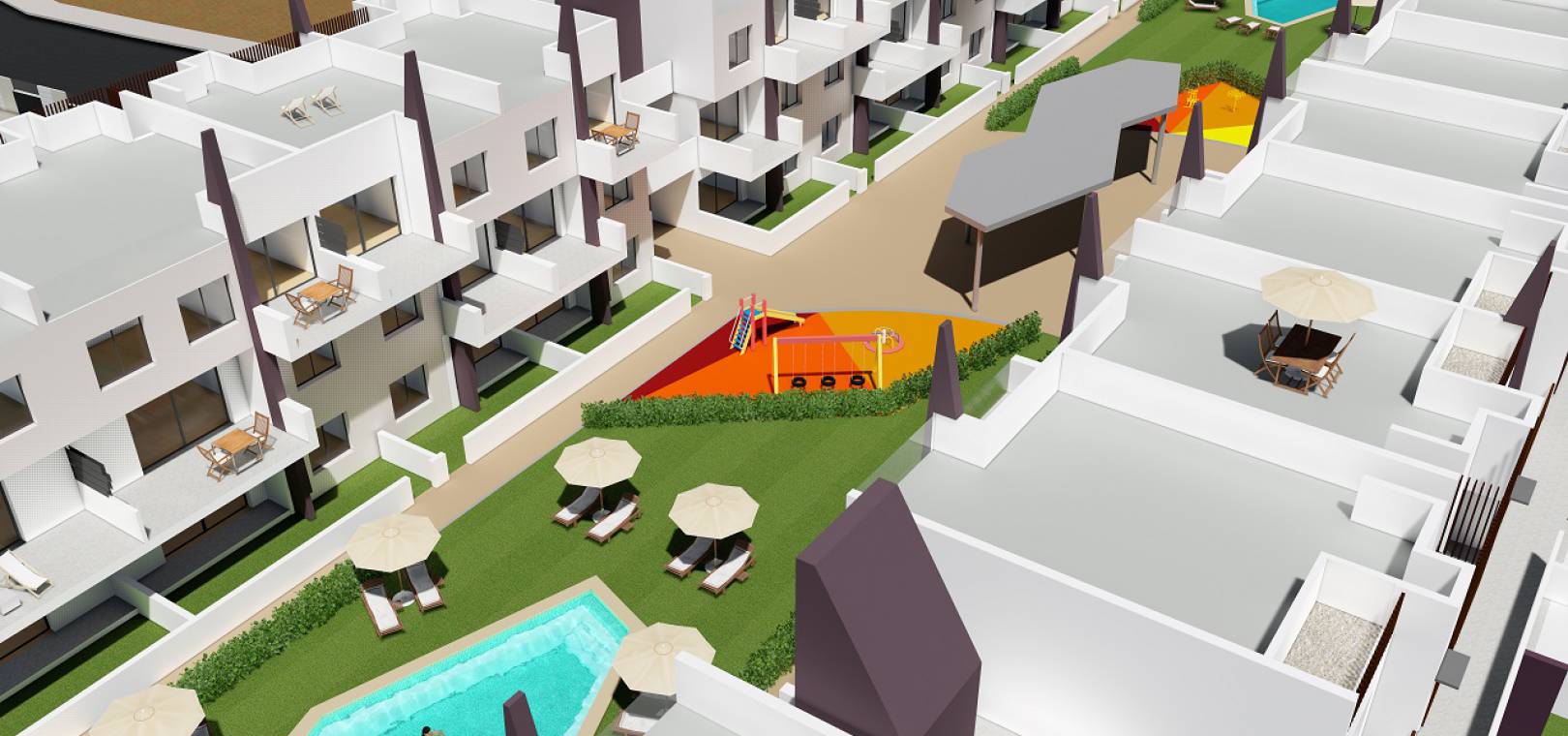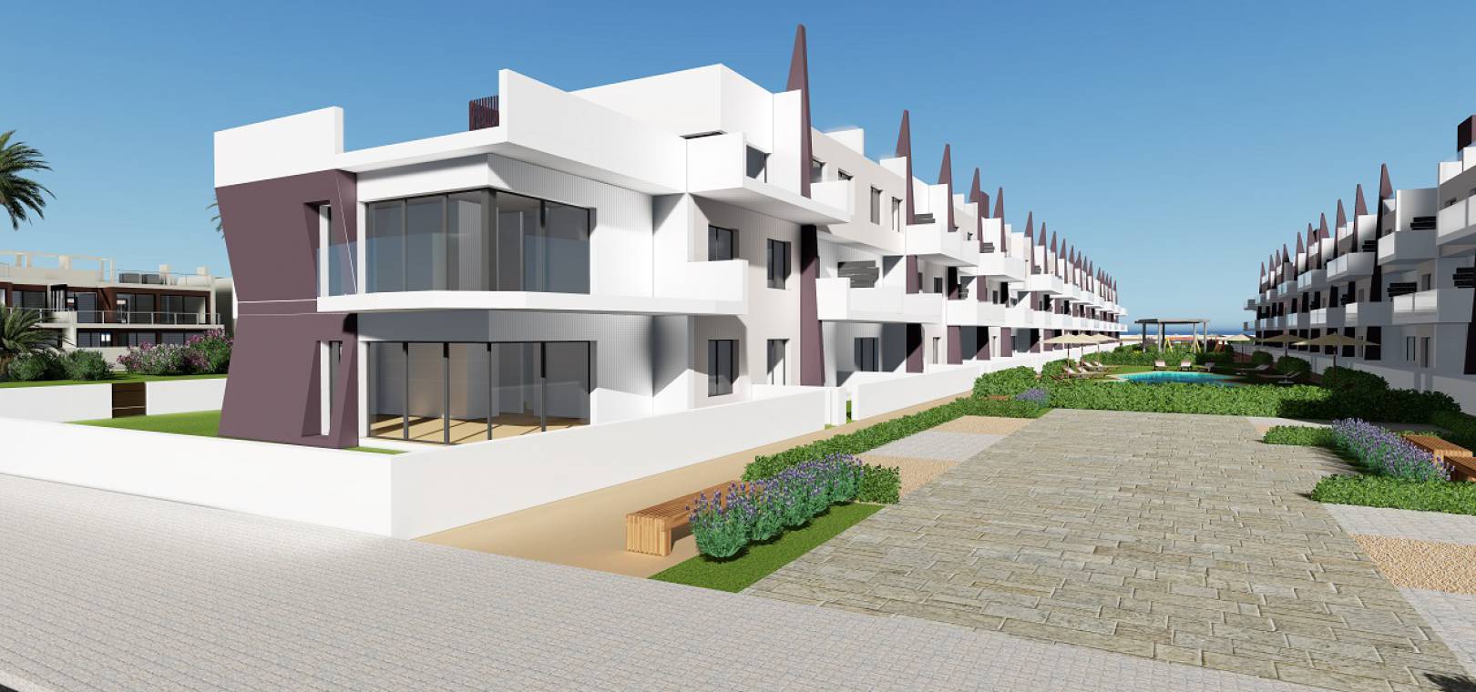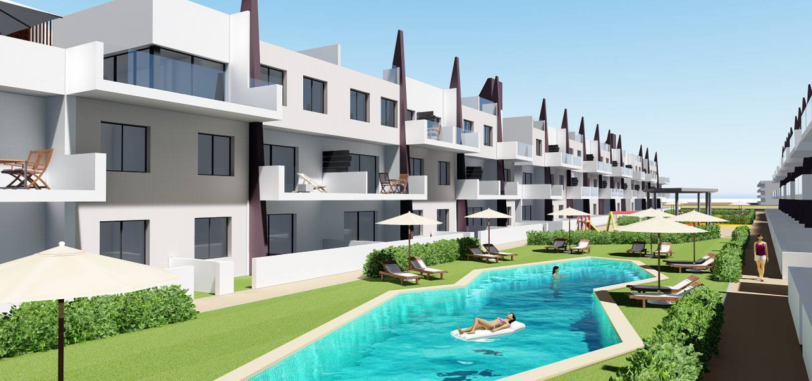 Here we have a fabulous new development of modern, stylish 2 and 3 bed bedroom apartments, communal pools, play areas and off-street parking very close to the beach at Mil Palmeras.