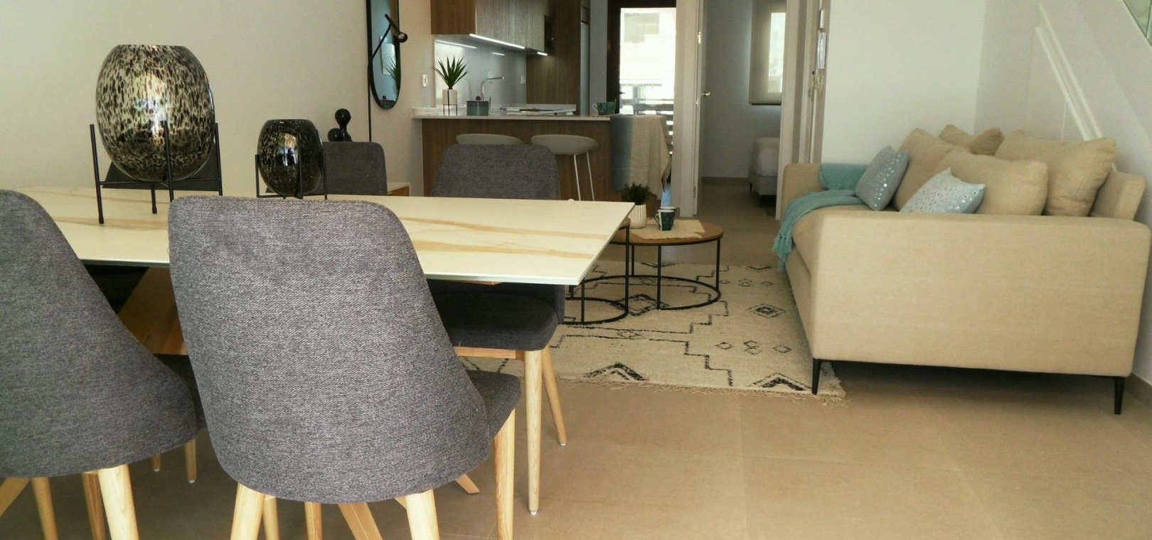 Bahia Homes in Pilar de la Horadada offers an exclusive opportunity to reside in luxurious modern townhouses, blending convenience with elegance in a well-established Spanish town. With its prime location within walking distance of Pilar de la Horadada's town centre and a short drive from the beach, this development ensures a lifestyle of comfort and accessibility.