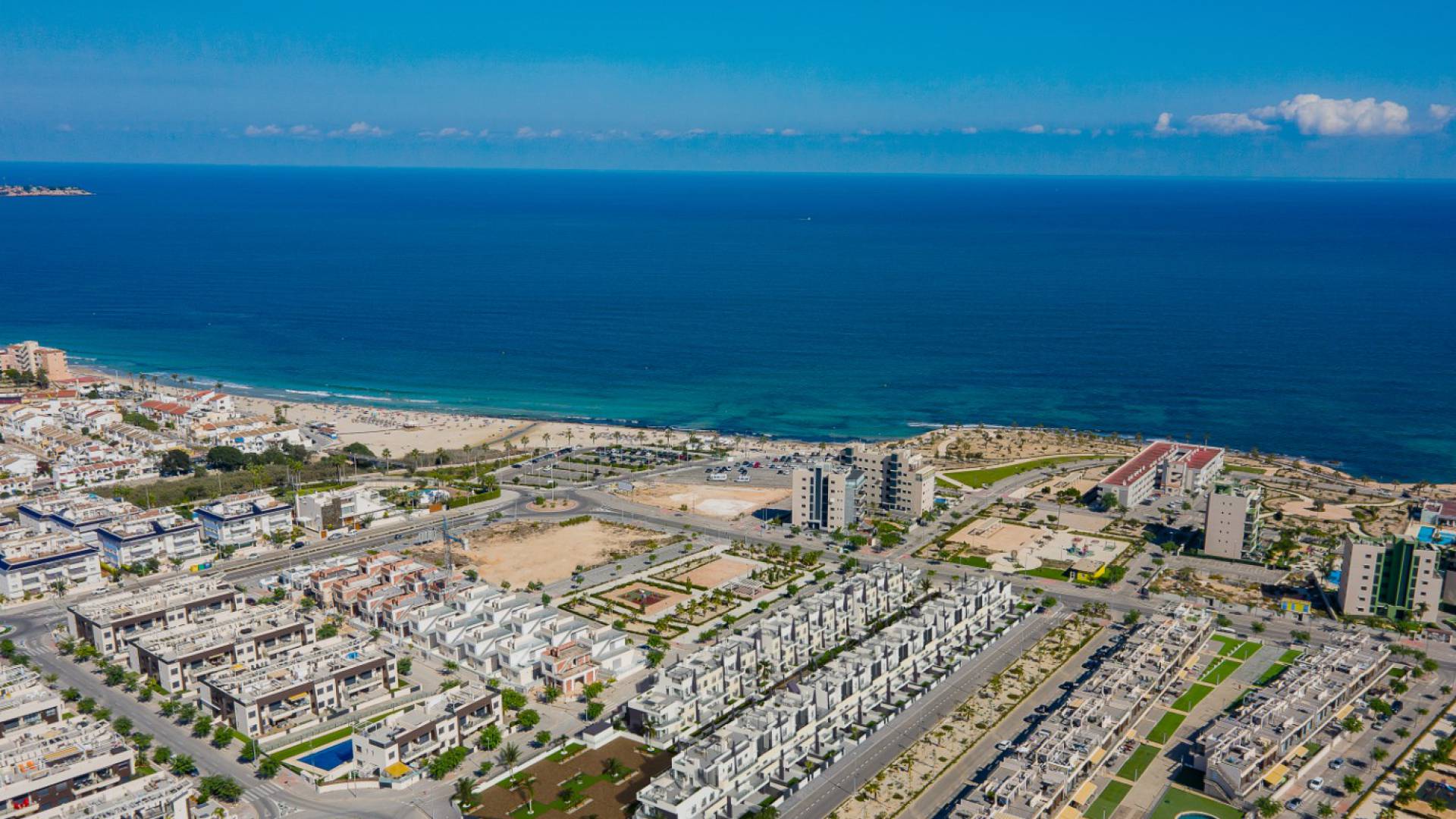 The apartments are well located close to a super beach and in between the 2 small resorts of Mil Palmeras and Torre De La Horadada. Golden sandy beaches, shops, bars and restaurants and leisure services are all just a short walk away. There are 3 main commercial centres all within an easy 10-minute walk featuring international restaurants, bars, ice cream parlours, shops and other services. There is also the beautiful marina at Torre De La Horadada with a yaught club and pretty harbour. Alicante and the new airport of Corvera are just 45 minutes away.