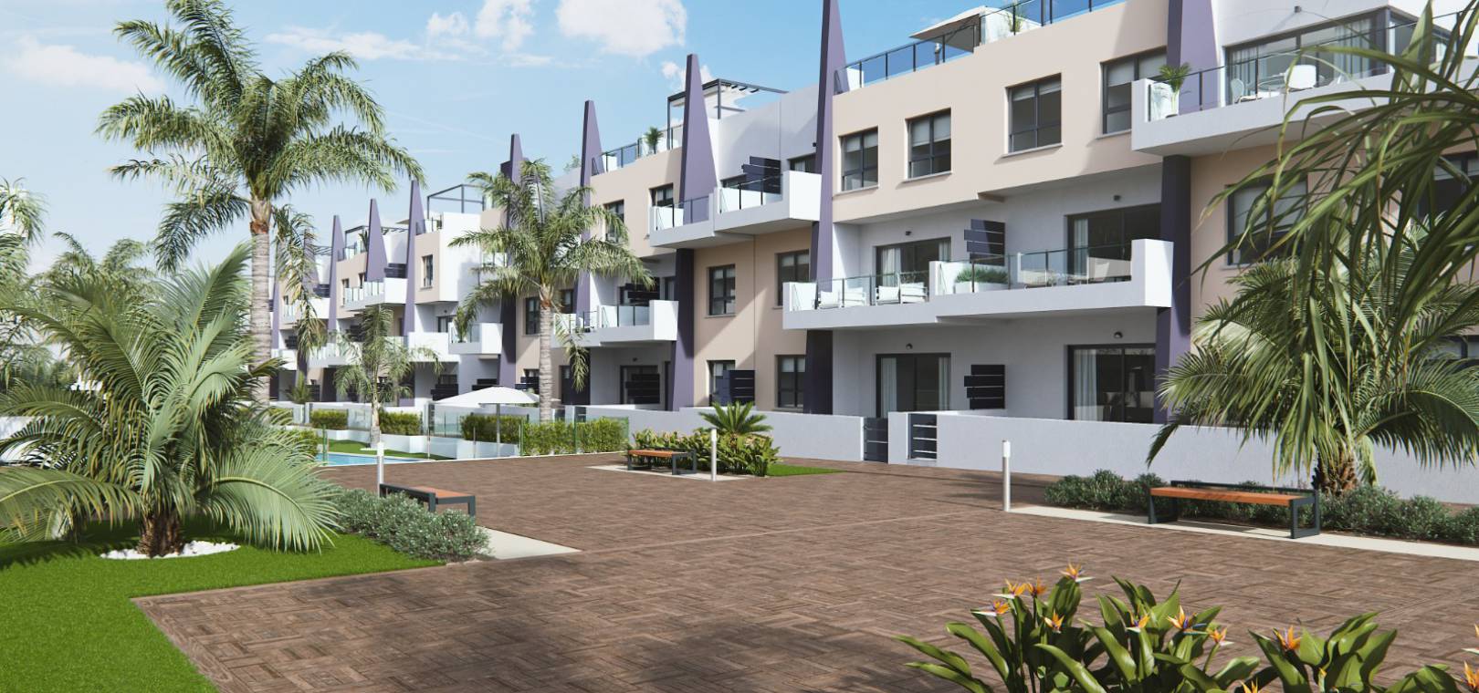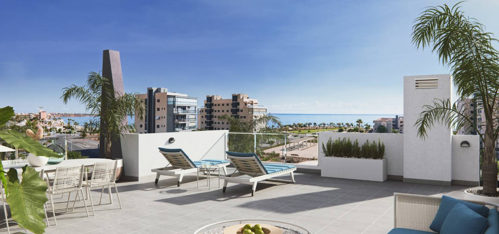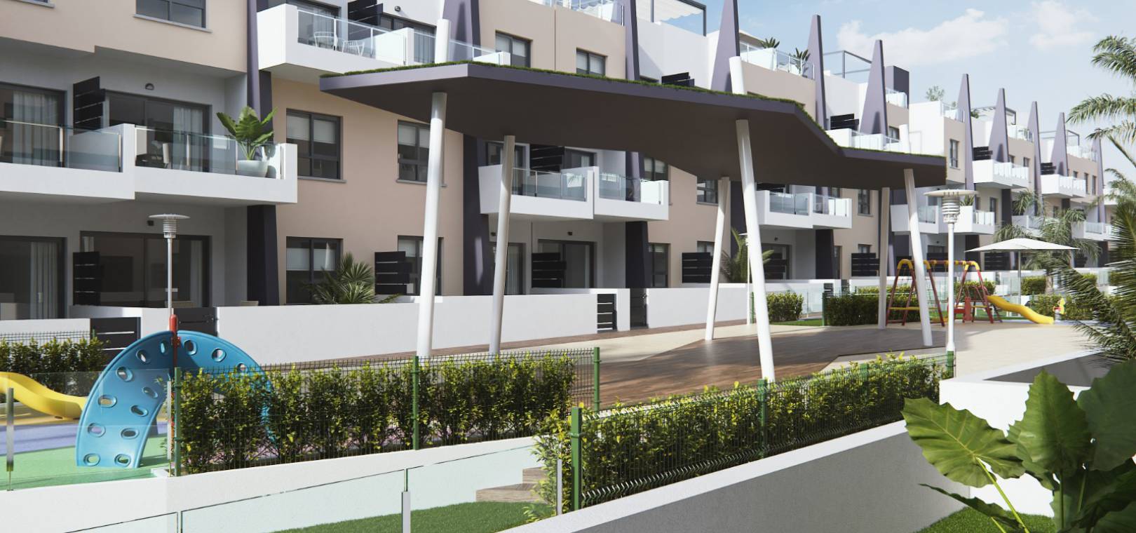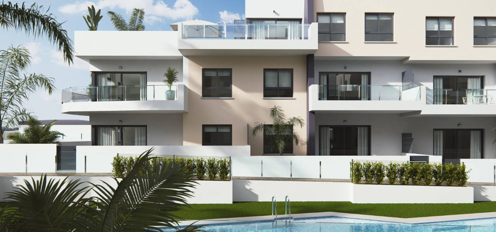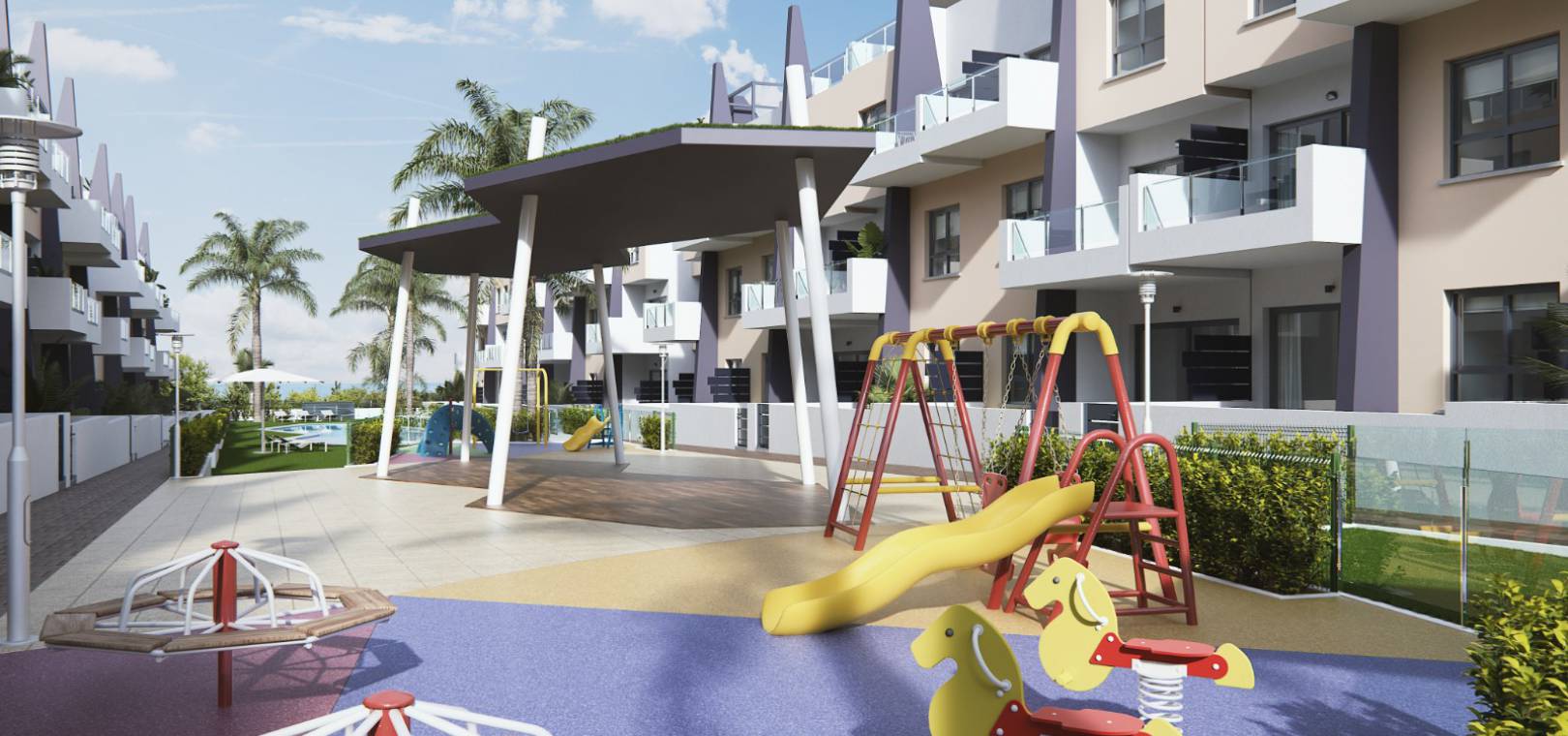 Here we have a fabulous new development of modern, stylish 2 and 3 bed bedroom apartments, communal pools, play areas and off-street parking very close to the beach at Mil Palmeras.