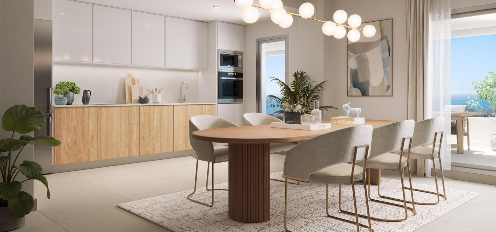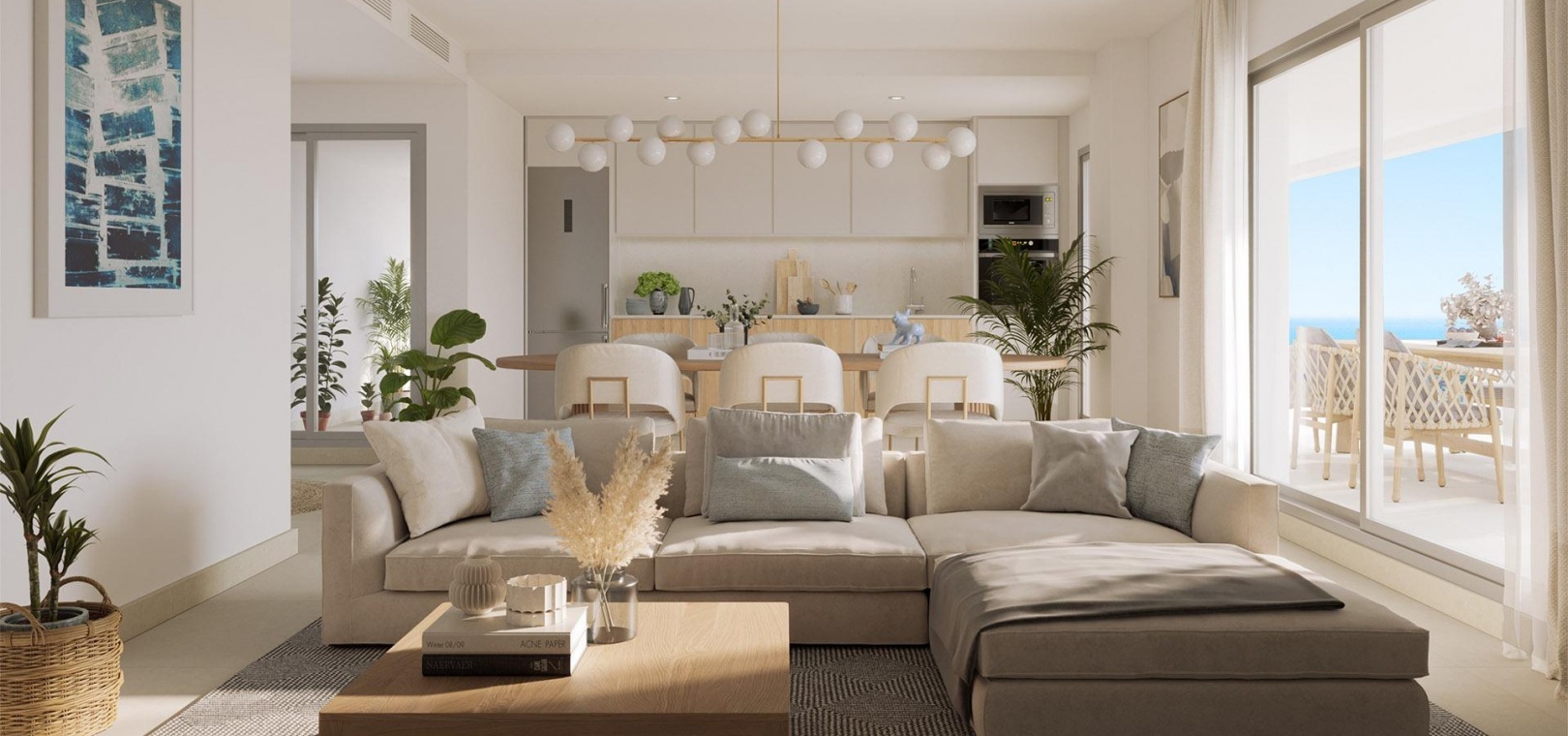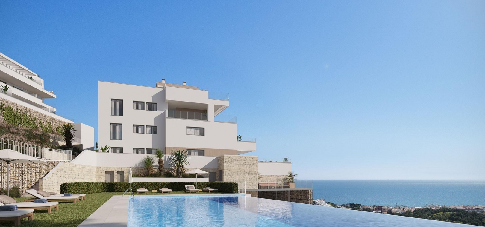 New Build residential complex of 48 apartments in La Cala de Mijas with 2 and 3 bedrooms, parking space and storage room, swimming pool and gymnasium.