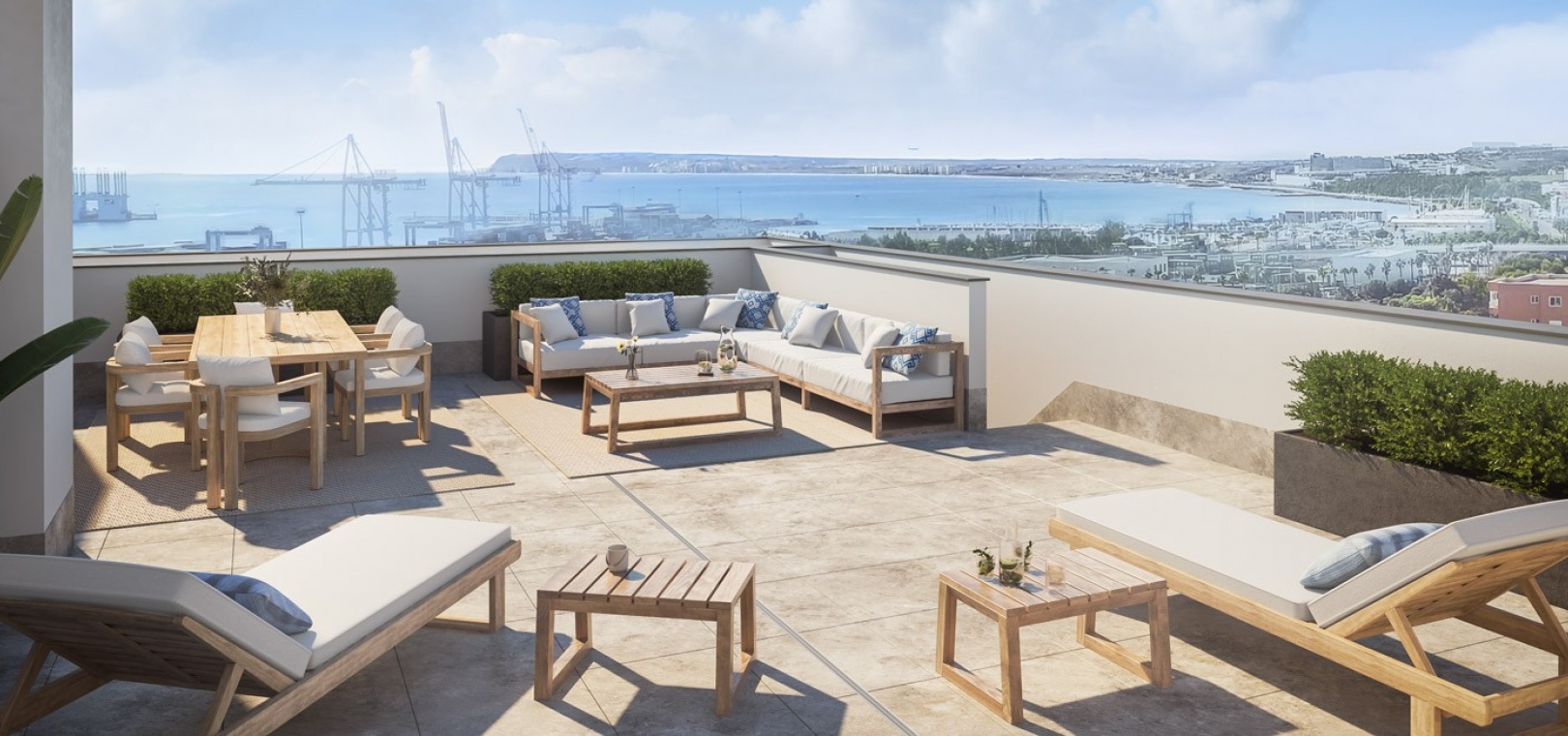 Residential Balmis in Alicante city centre is a luxurious apartment development of 60 properties, superbly located in the heart of this beautiful city. There are options from the ground floor to penthouse and this luxury development has a rooftop swimming pool, gym and each apartment also includes private parking with storage room.