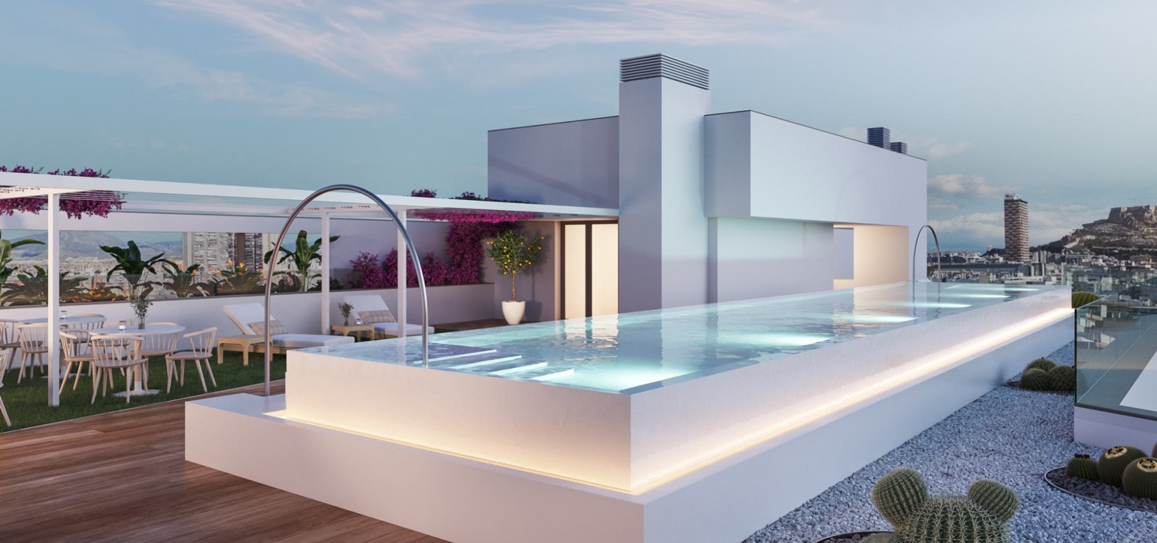 Residential Naya in Alicante city centre is a luxurious apartment development of 53 properties, superbly located in the heart of this beautiful city. There are options from the ground floor to penthouse and this luxury development has a rooftop swimming pool, gym, social club and each apartment also includes private parking with storage room.