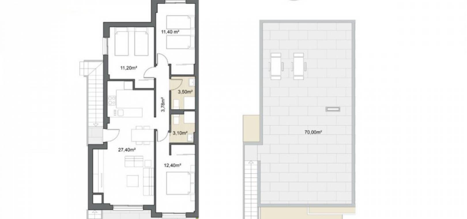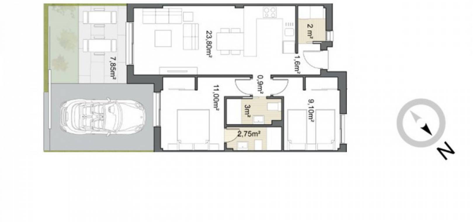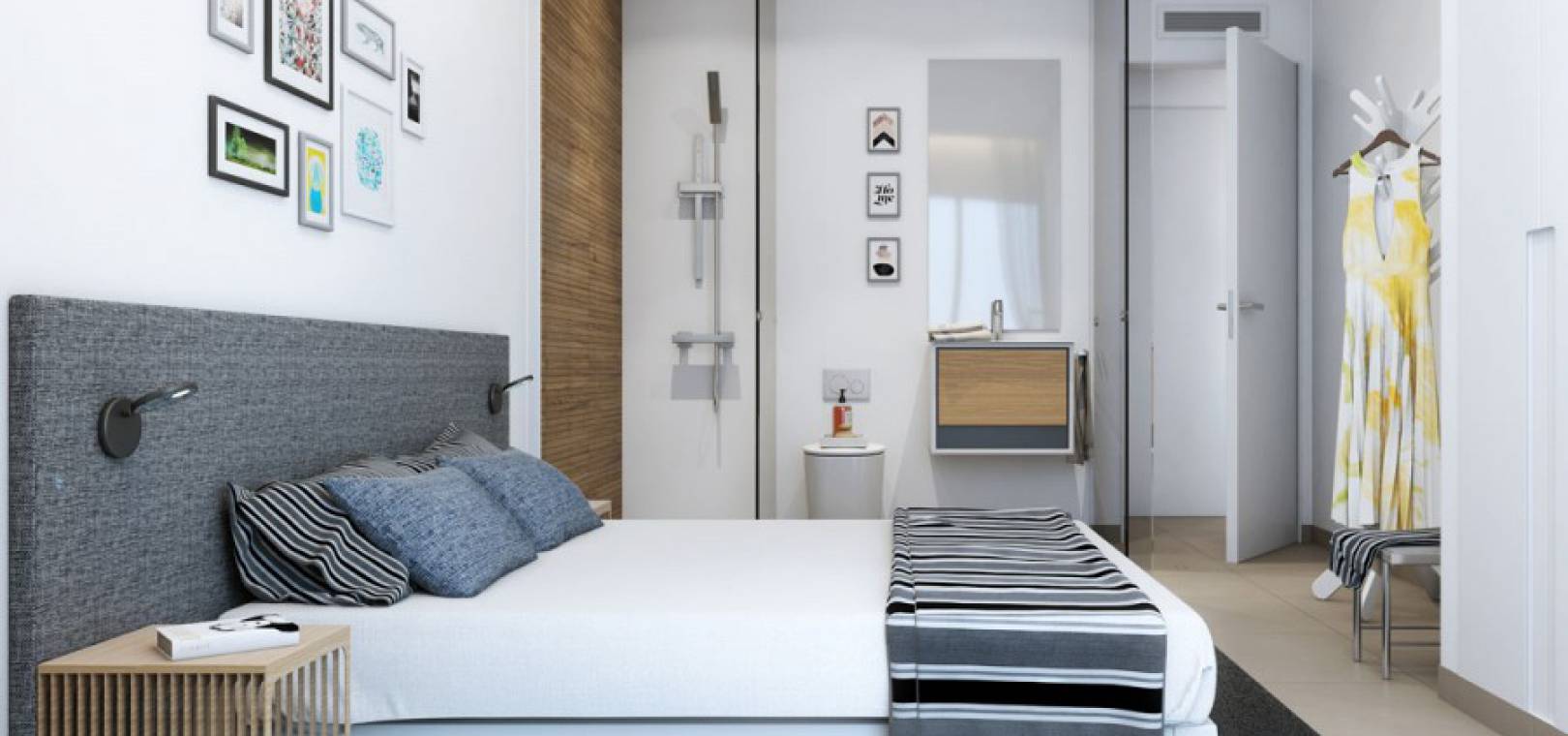 Every well designed highly specified unit boasts a spacious living/dining room, open plan modern kitchen, two bedrooms with fitted wardrobes, two modern bathrooms, a terrace/balcony, with pre-installation for the air conditioning (hot/cold), a storage room and an allocated parking space.