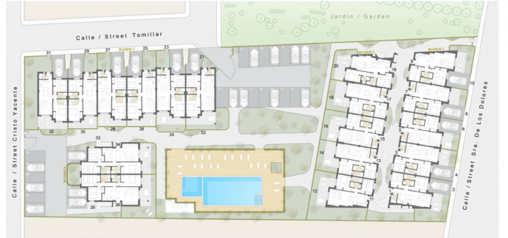 Fantastic new development of 36 properties offering top floor (with private rooftop solarium) and ground floor (with private garden) apartments near the centre of Pilar de la Horadada, Alicante and within less than 5 minutes from the stunning beaches of Las Higuericas, La Torre and El Mojón.