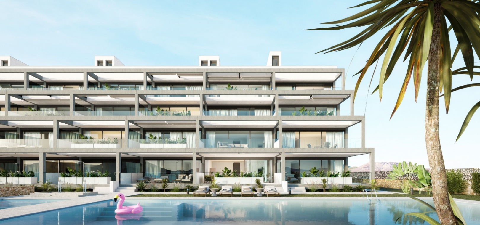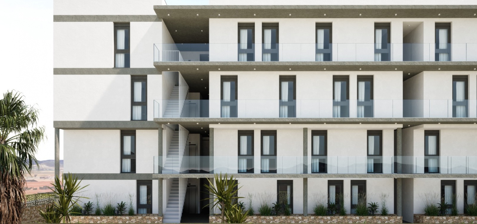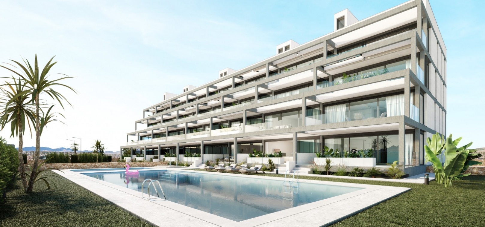 These luxurious modern Antilia 4 apartments are situated just 300 metres from the beach in Mar de Cristal near the bustling town of Los Belones in La Manga on the Mar Menor. On this exclusive development you have the choice of 2 or 3 bedroom apartments on the ground floor with garden, mid-floor with terrace or a penthouse with rooftop solarium. The properties are built to the highest standard and come with a modern kitchen with fitted appliances, lovely communal gardens with swimming pool, secure underground parking and storage room.