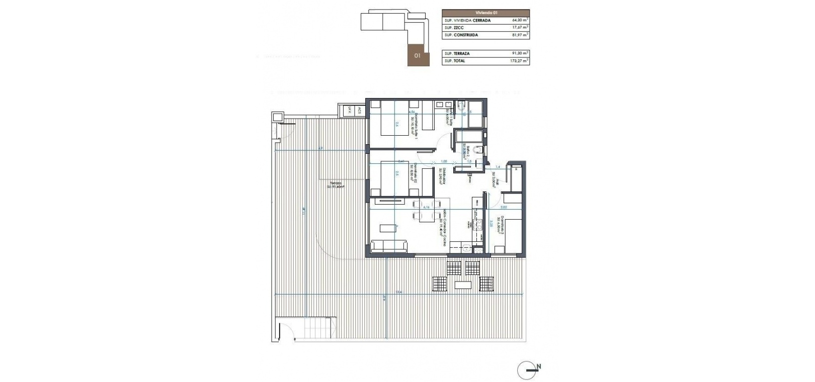 Terrace: 91 Msq.