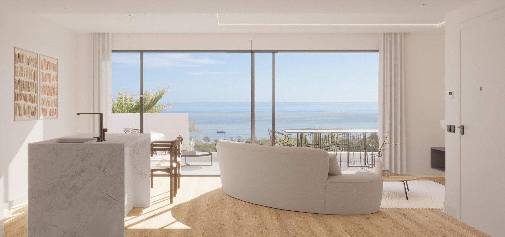 Top floor flats with large balcony, private solarium and spectacular sea views, perfect for enjoying the Mediterranean sun.