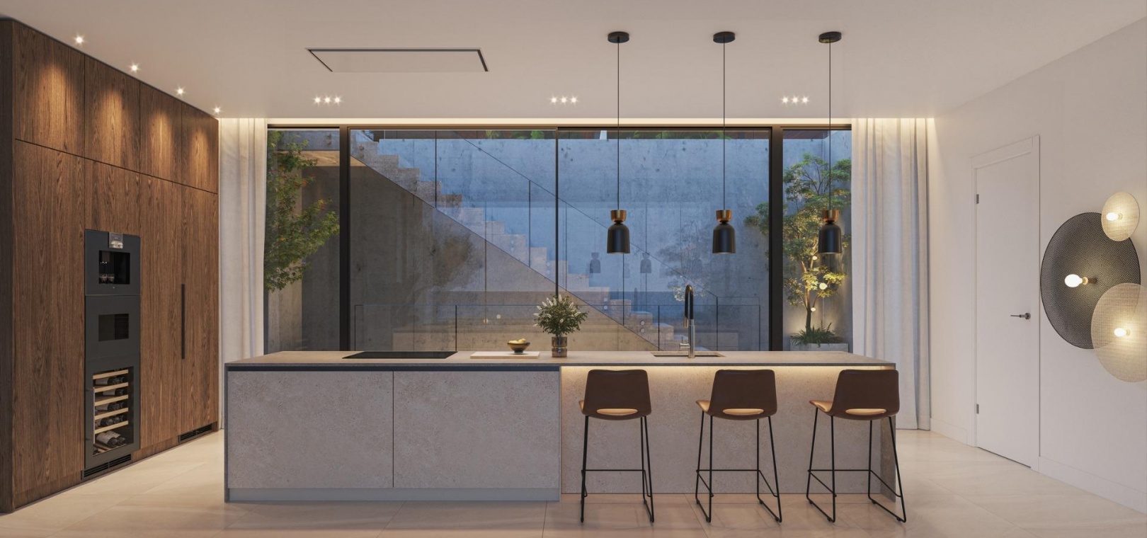 Each home is designed for modern luxury with fully furnished kitchens and advanced comforts like underfloor heating, customizable climate control, and integrated domotic systems for temperature and lighting management. Bedrooms and living spaces offer a cozy, contemporary atmosphere, blending elegance and functionality.