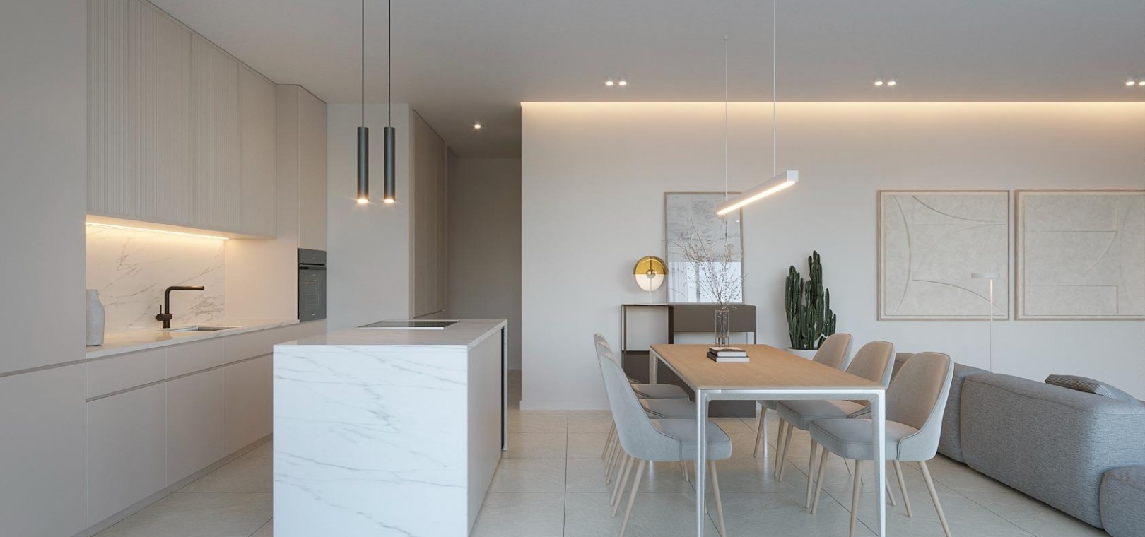 Modern properties with 2 and 3 bedrooms, all with 2 bathrooms, open plan kitchen with spacious living room, fitted wardrobes, terrace, underground parking space.