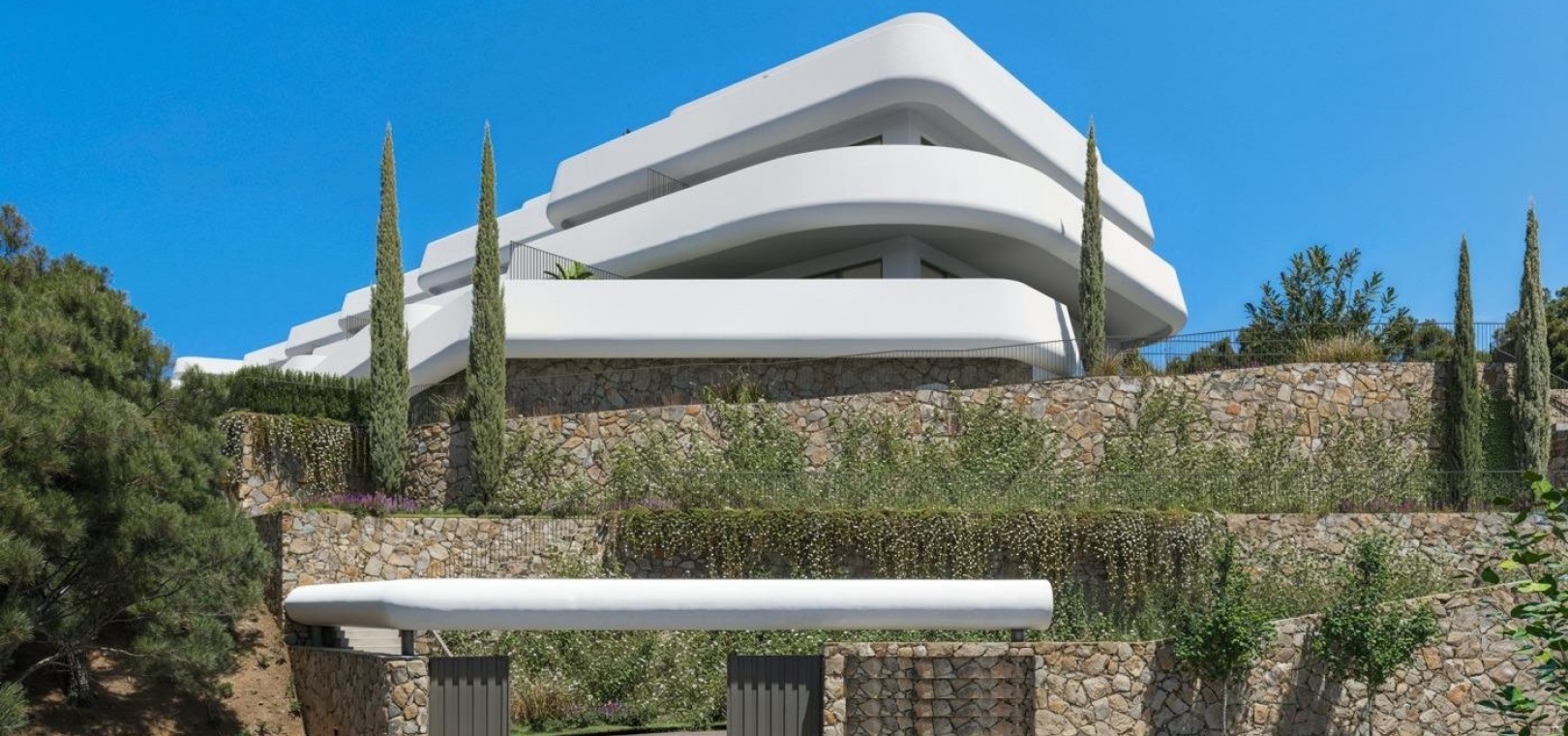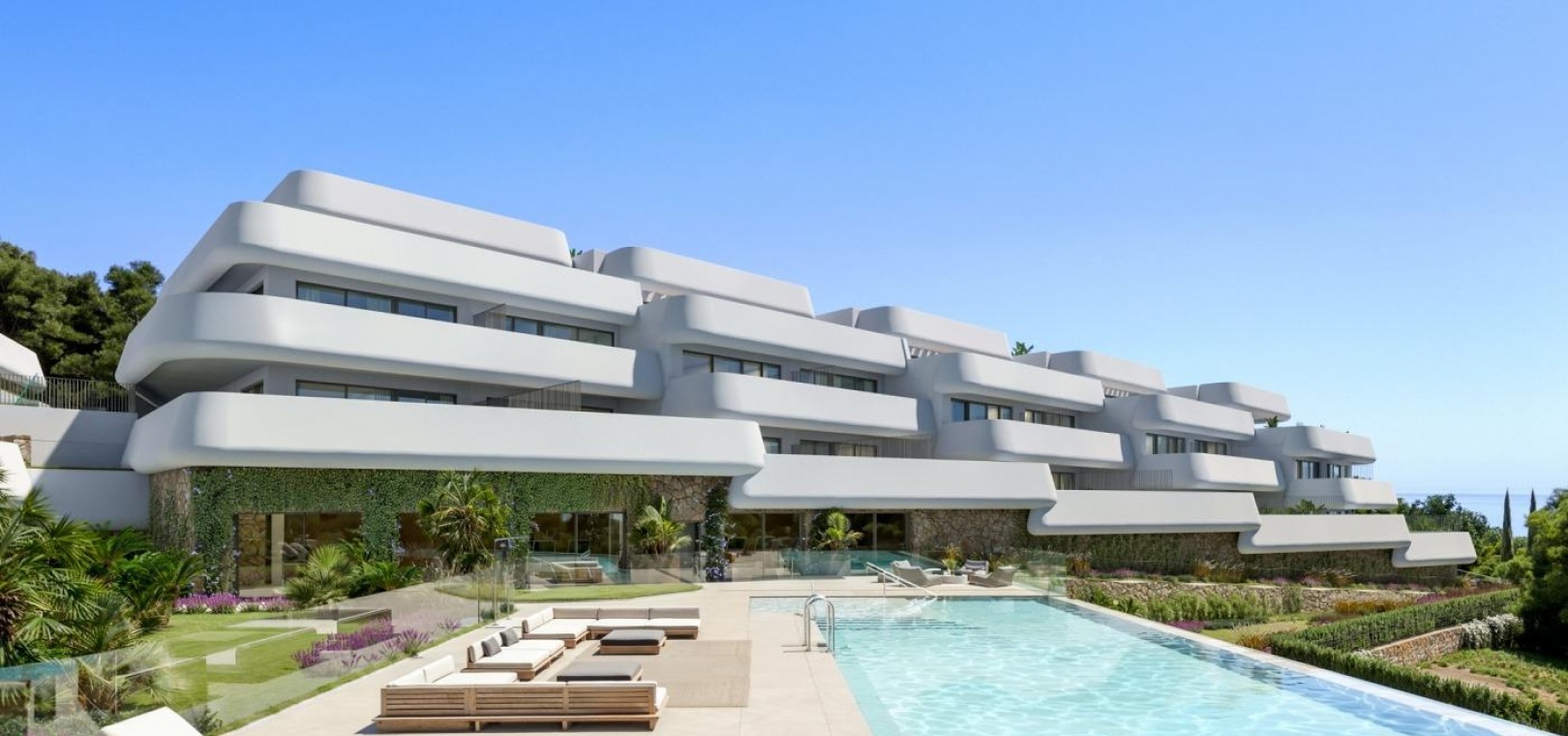 The complex comprises ten low-rise buildings with a boutique feel, designed to maximize privacy, comfort, and stunning views of both the Mediterranean Sea and the golf course. Each home features spacious interiors, open layouts, and large cascading terraces that seamlessly connect indoor and outdoor living. From ground-floor apartments with private elevated gardens to exclusive penthouses with expansive terraces with panoramic views, every detail is designed for a serene and elegant lifestyle.