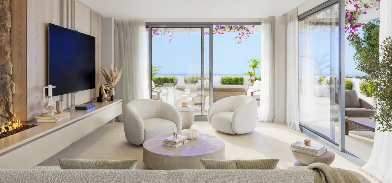 Natural-toned materials and ivory palettes that create warmth and sophistication.