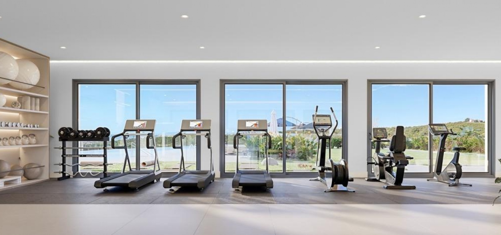 Fully equipped gym and coworking space.