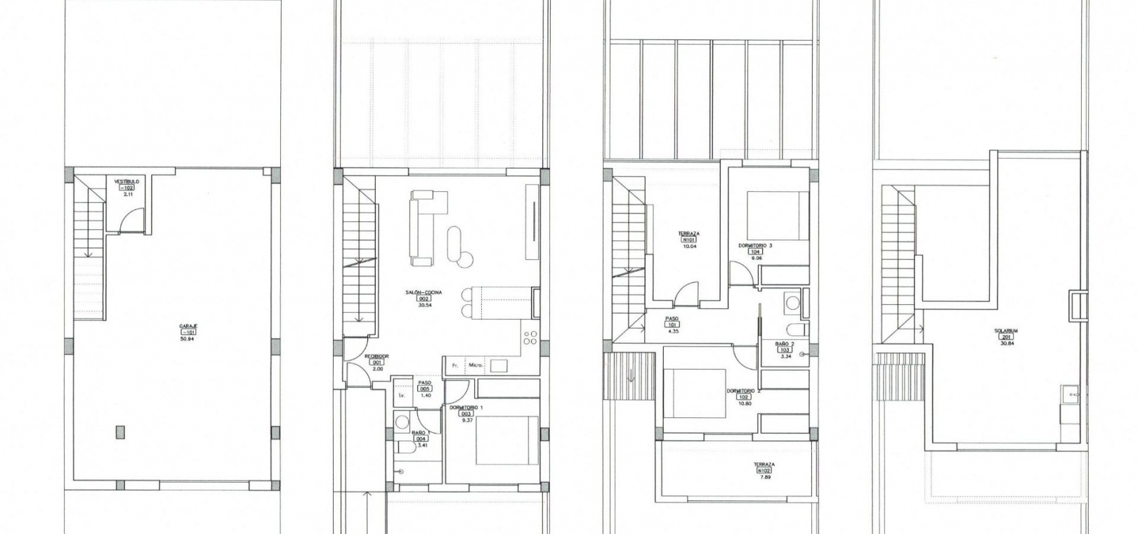 Each house features a stylish contemporary design and bright interior spaces. The homes are arranged across three levels plus rooftop solarium, offering maximum comfort and privacy: