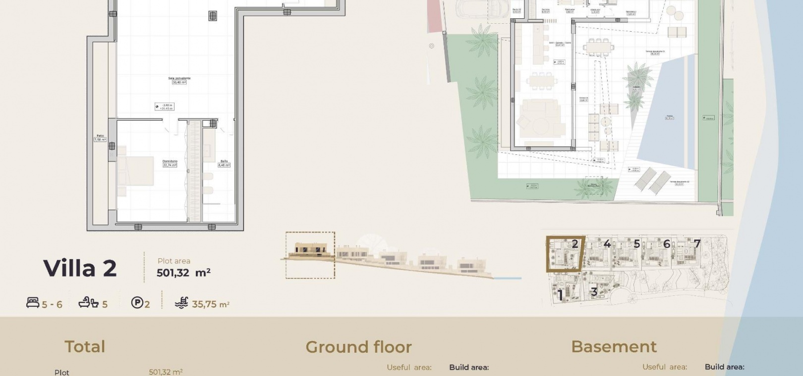 The villas are arranged over three floors plus a solarium. Each property boasts a large basement with natural light and ventilation, ready to be customized according to personal needs, whether a gym, cinema room, extra bedrooms or entertainment space. The main and first floors feature the main living areas and several terraces, while the spacious rooftop solarium allows residents to enjoy panoramic views. Four of the seven villas enjoy spectacular sea views from the solarium.
