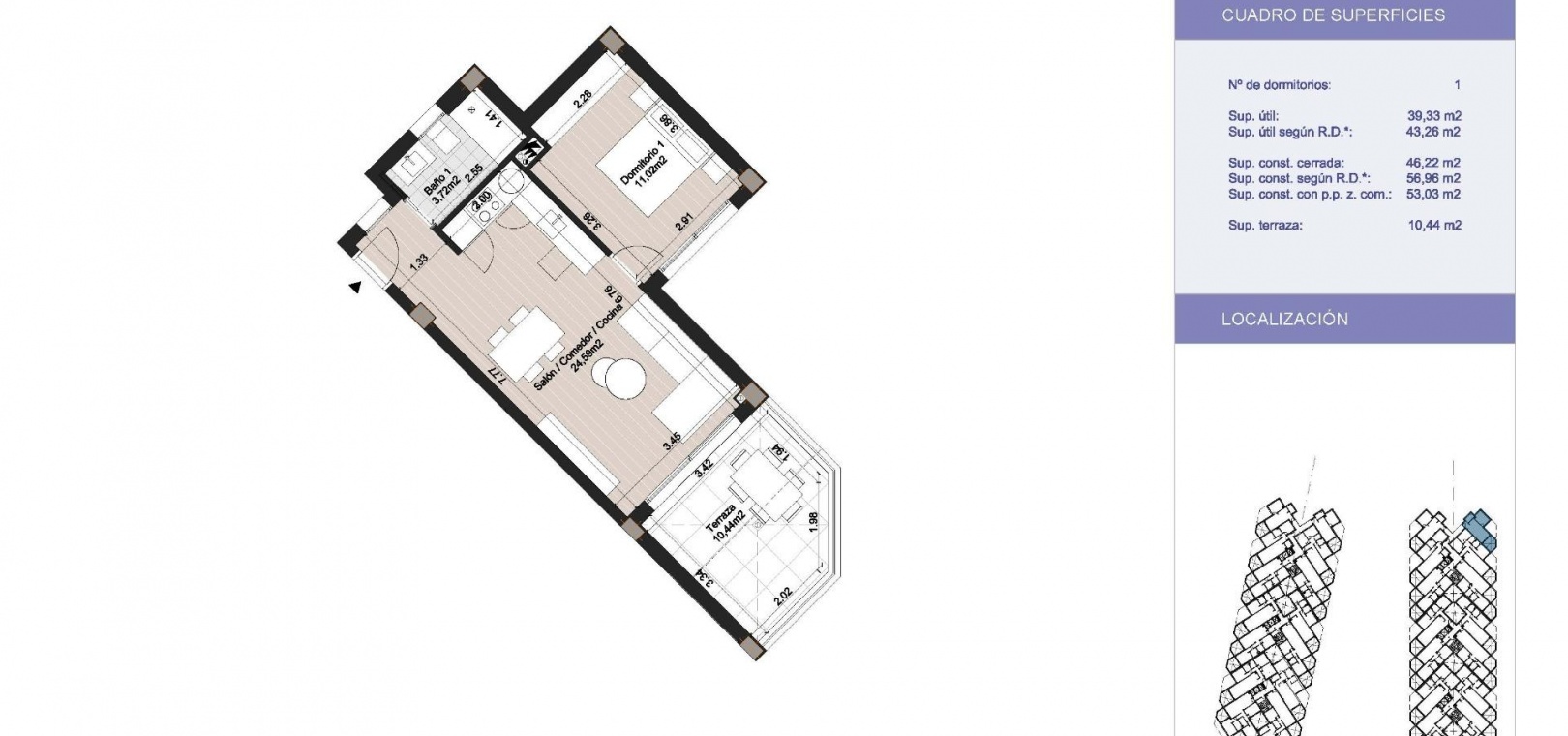 Porcelain flooring and built-in wardrobes.